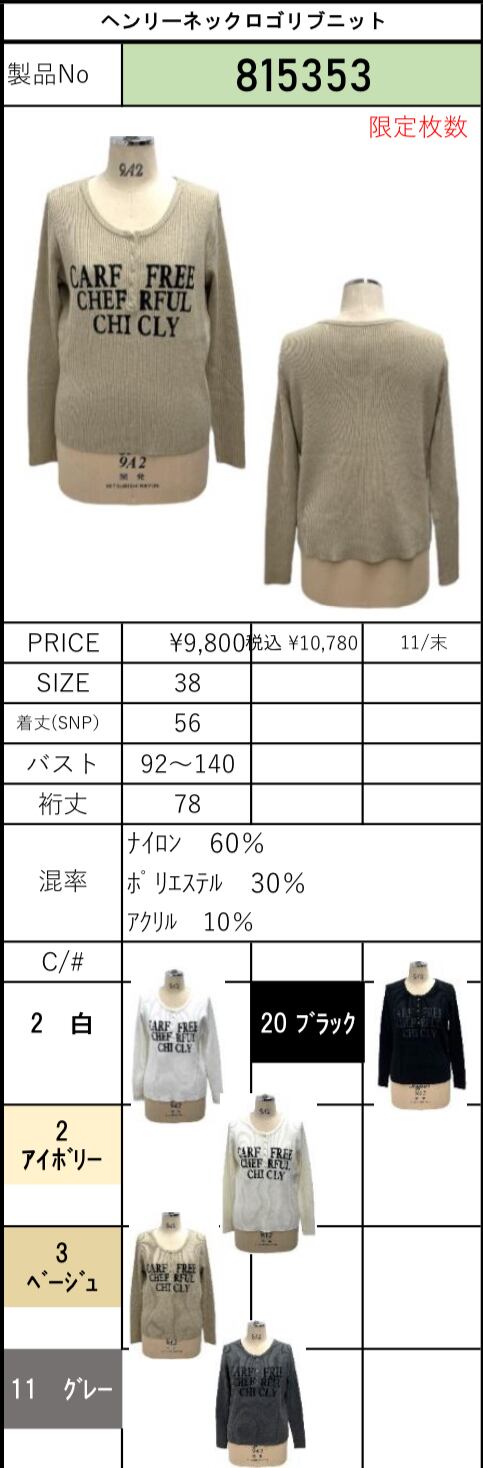 予約販売【 ayane 】ヘンリーネックロゴリブニット (815353) 11月下旬お届け★数量限定