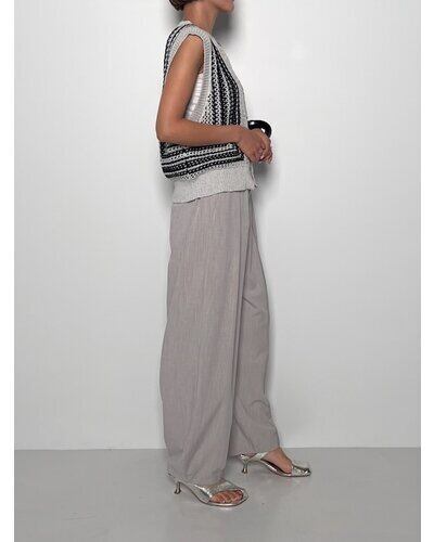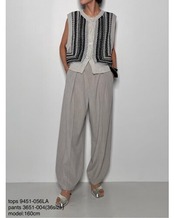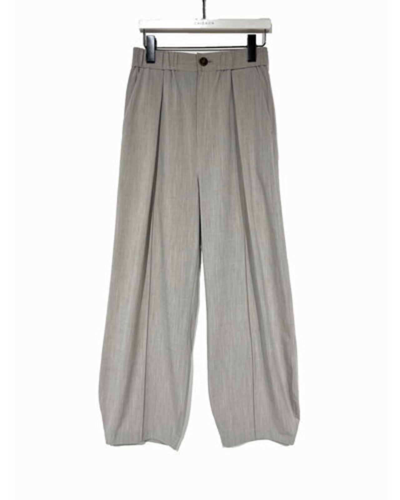 裾に向けて丸く入ったシルエットが新鮮なデザインPTです。