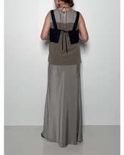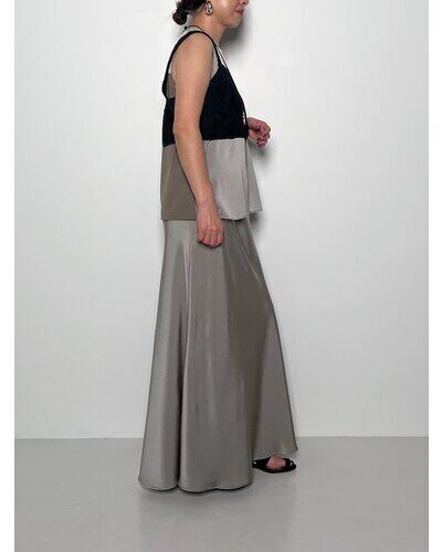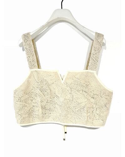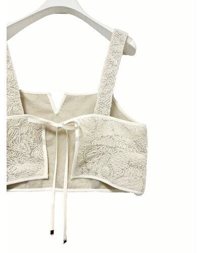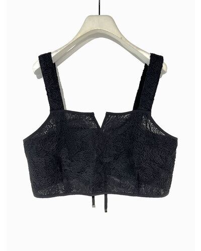 シアー素材に刺繍されたレース素材が特徴的なキャミビスチェです。