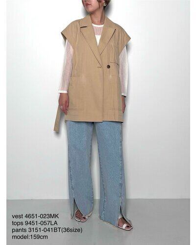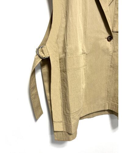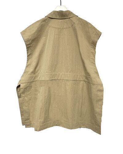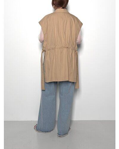 トレンチとサファリJKのディテールを兼ね備えながら、ミニマルな印象の大人っぽいレイヤードベストになっています。