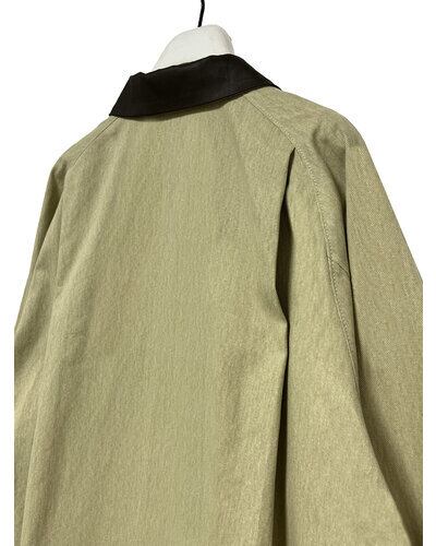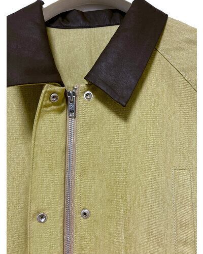 ウォッシュ加工を施した生地はビンテージのような絶妙な色褪せがポイント。生地は程よくハリがあり、袖と後身頃の立体感を引き立たせています。大き目のフラップとゴールドのスタッズで、メンズっぽくなりすぎないよう遊びをプラスしました。
