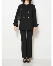 ストレッチのカットソー素材を使用した、フレアシルエットパンツ。
