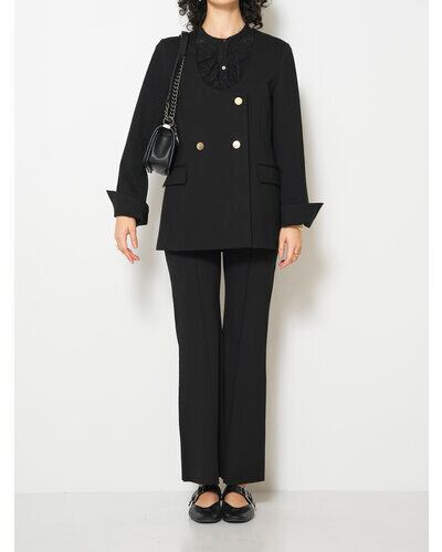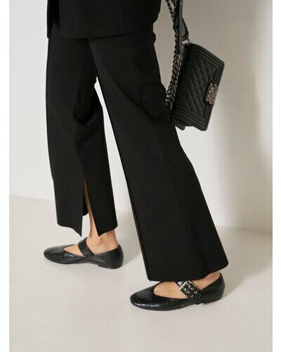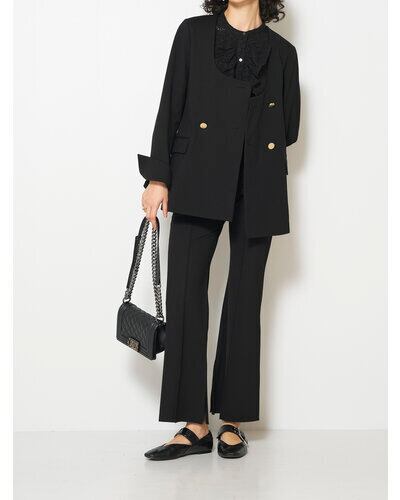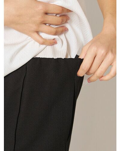 ピンタックのセンタープレスと、インスリットが脚を綺麗に長く見せてくれます。