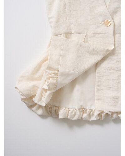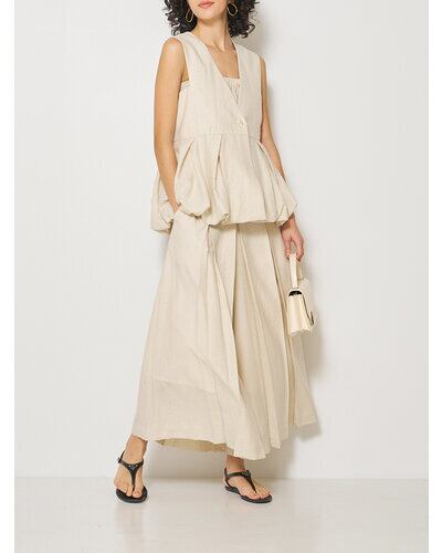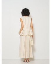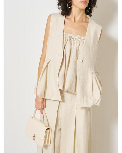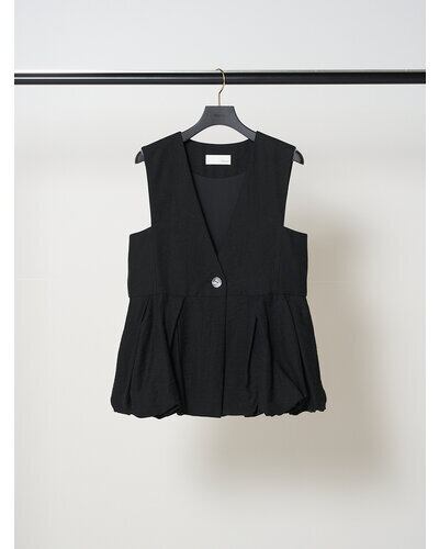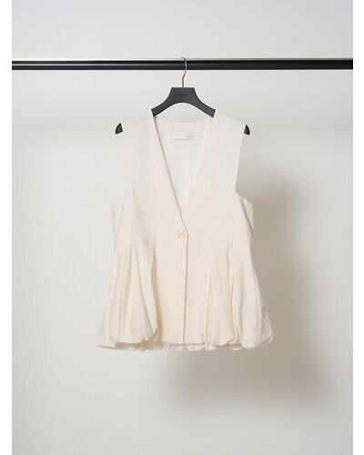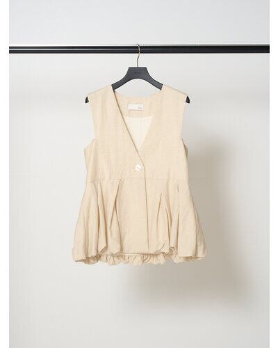 リネン混素材を使用し、タック&ギャザーでボリュームを出したバルーンシルエットベスト。