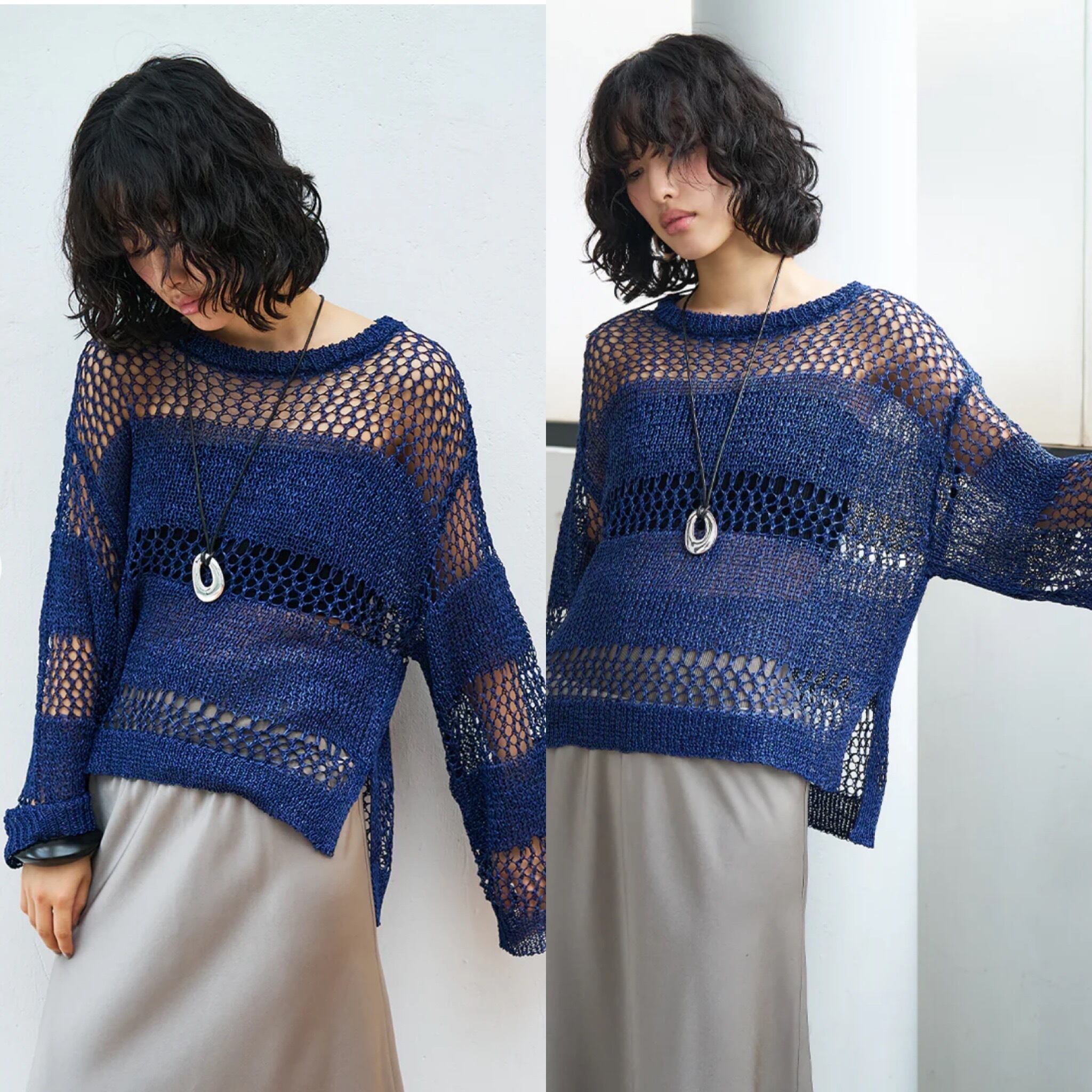 透け感が春夏らしいスカシ編みニットPO