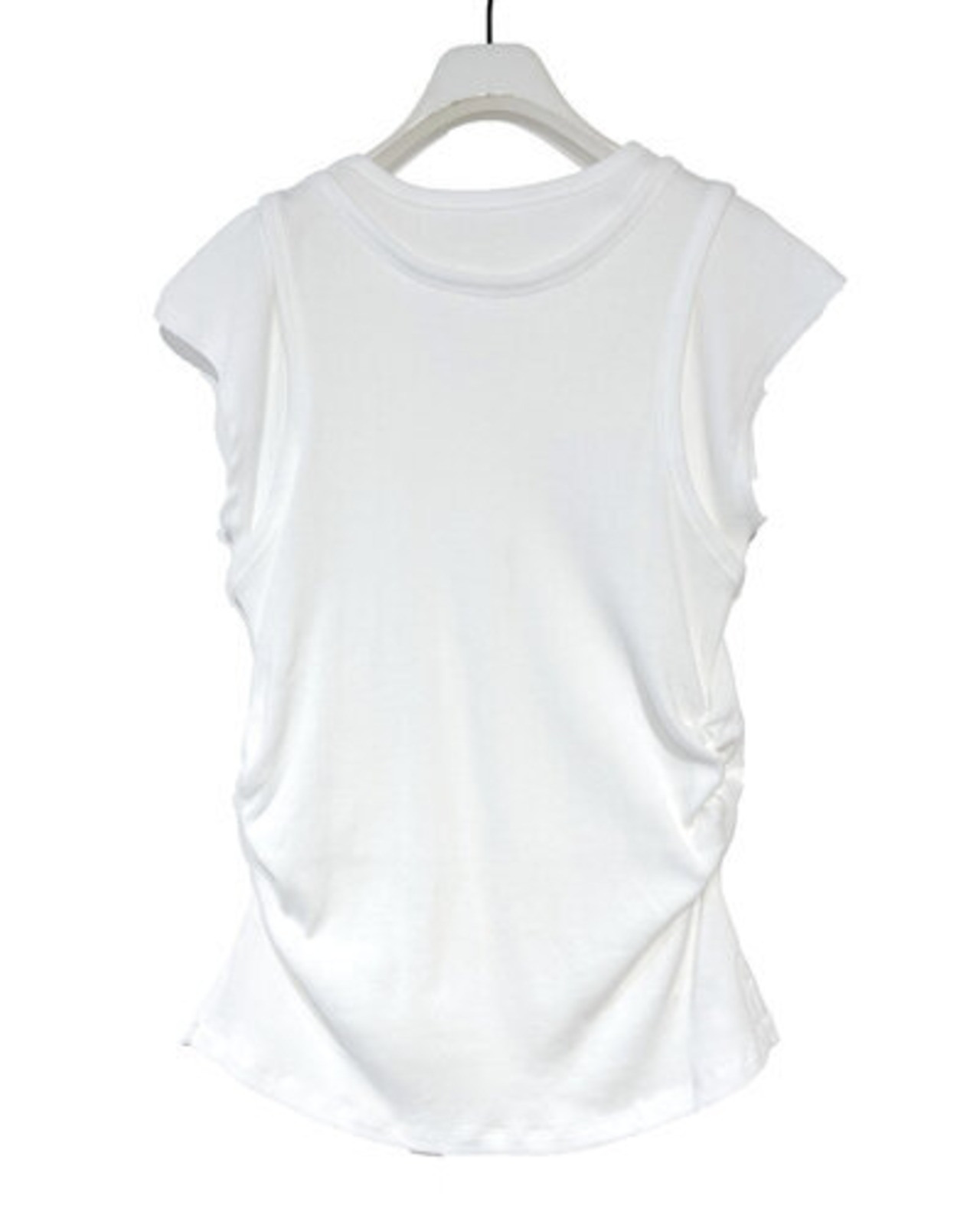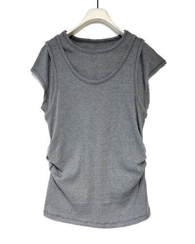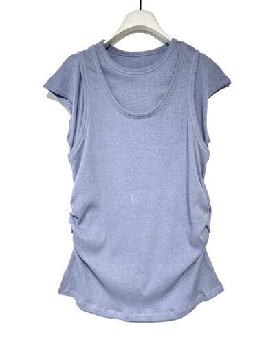 同じ素材のタンクトップをレイヤードしたようなデザインで、トレンドの着こなしを1枚で再現しました。