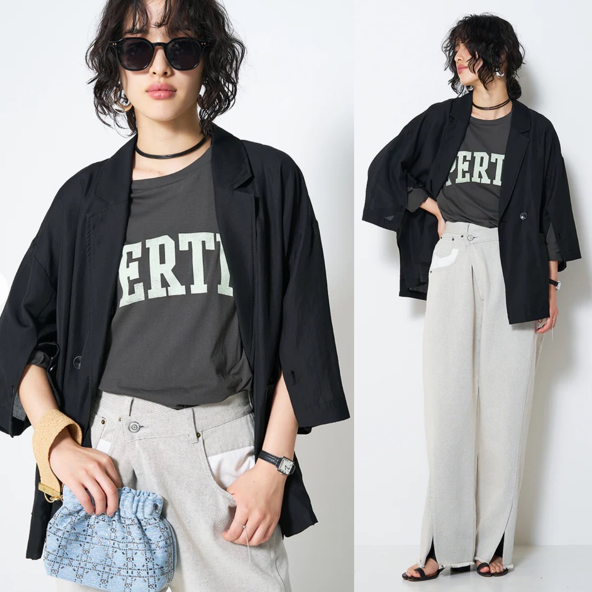 薄手のサラっとした綿生地に、カスレ加工を施したカジュアルなロゴをのせました。