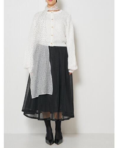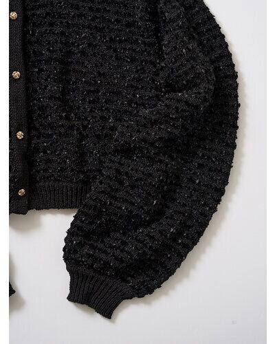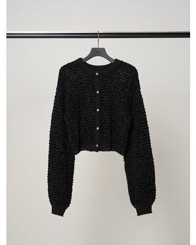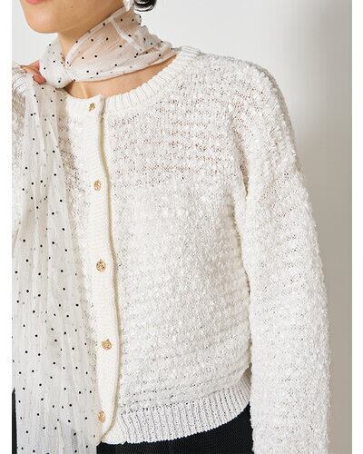 フリンジのように見える意匠糸を使用した2WAYカーディガン。