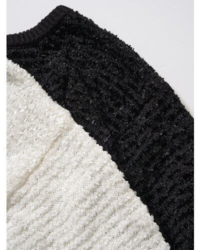二種類の糸をボーダー状に編み分けて、凹凸感のあるデザインニットに仕上げました。