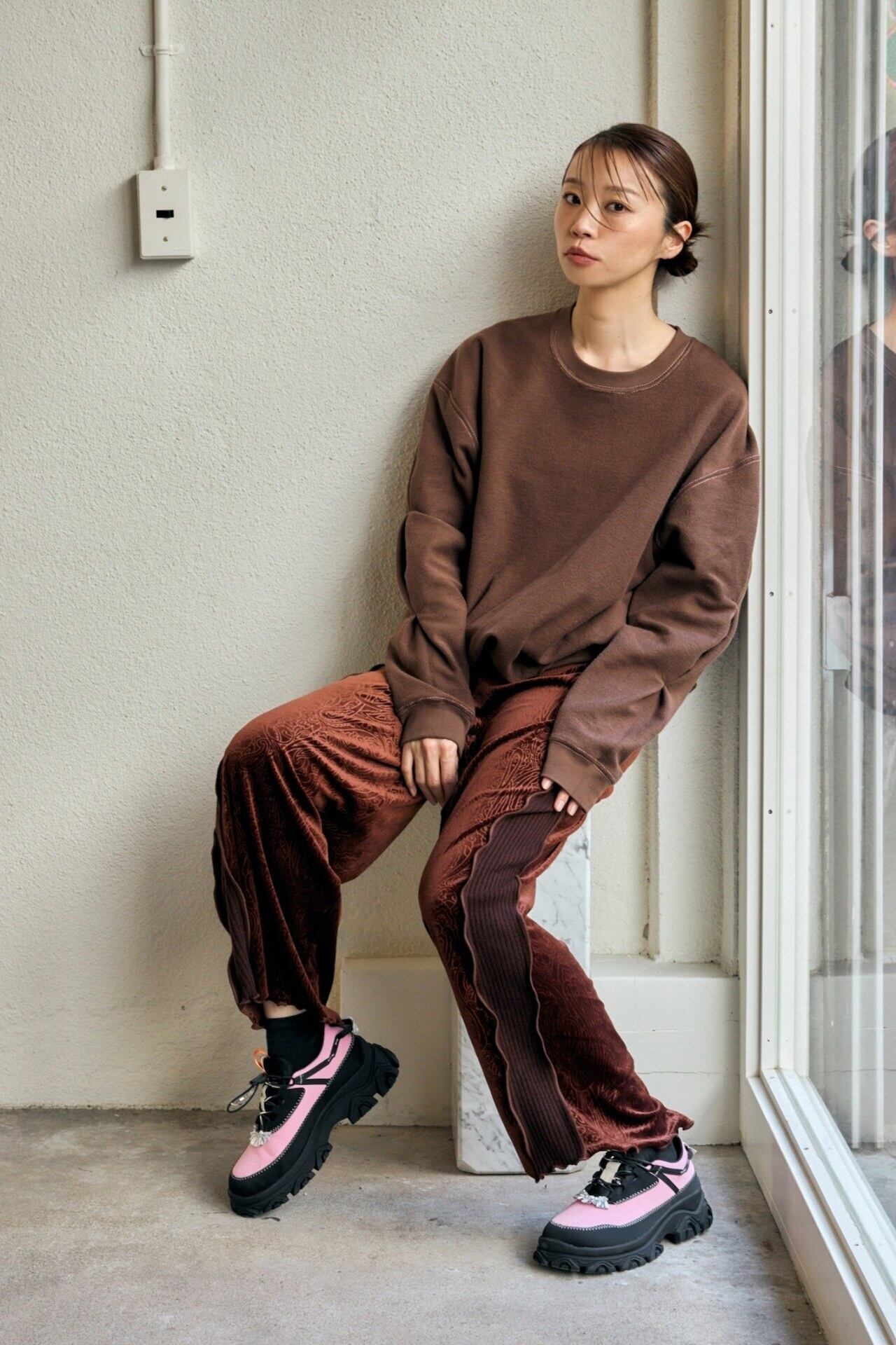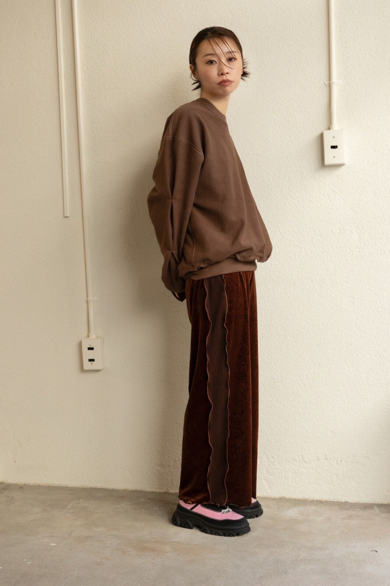 予約販売【 rehersall 】パイルラインスリーブスウェット ブラウン ( mate-280 ) 2025年 2月旬お届け