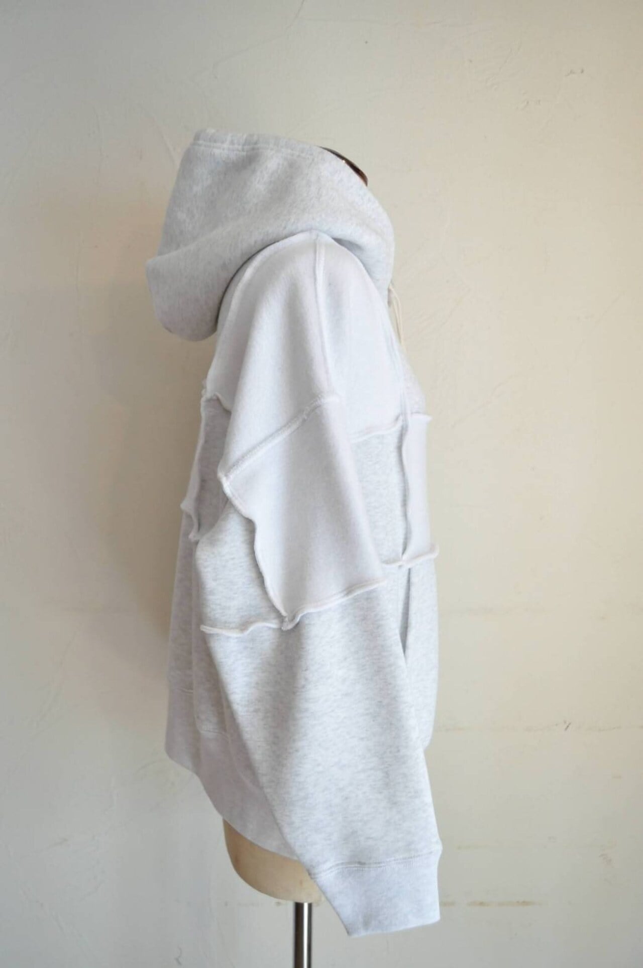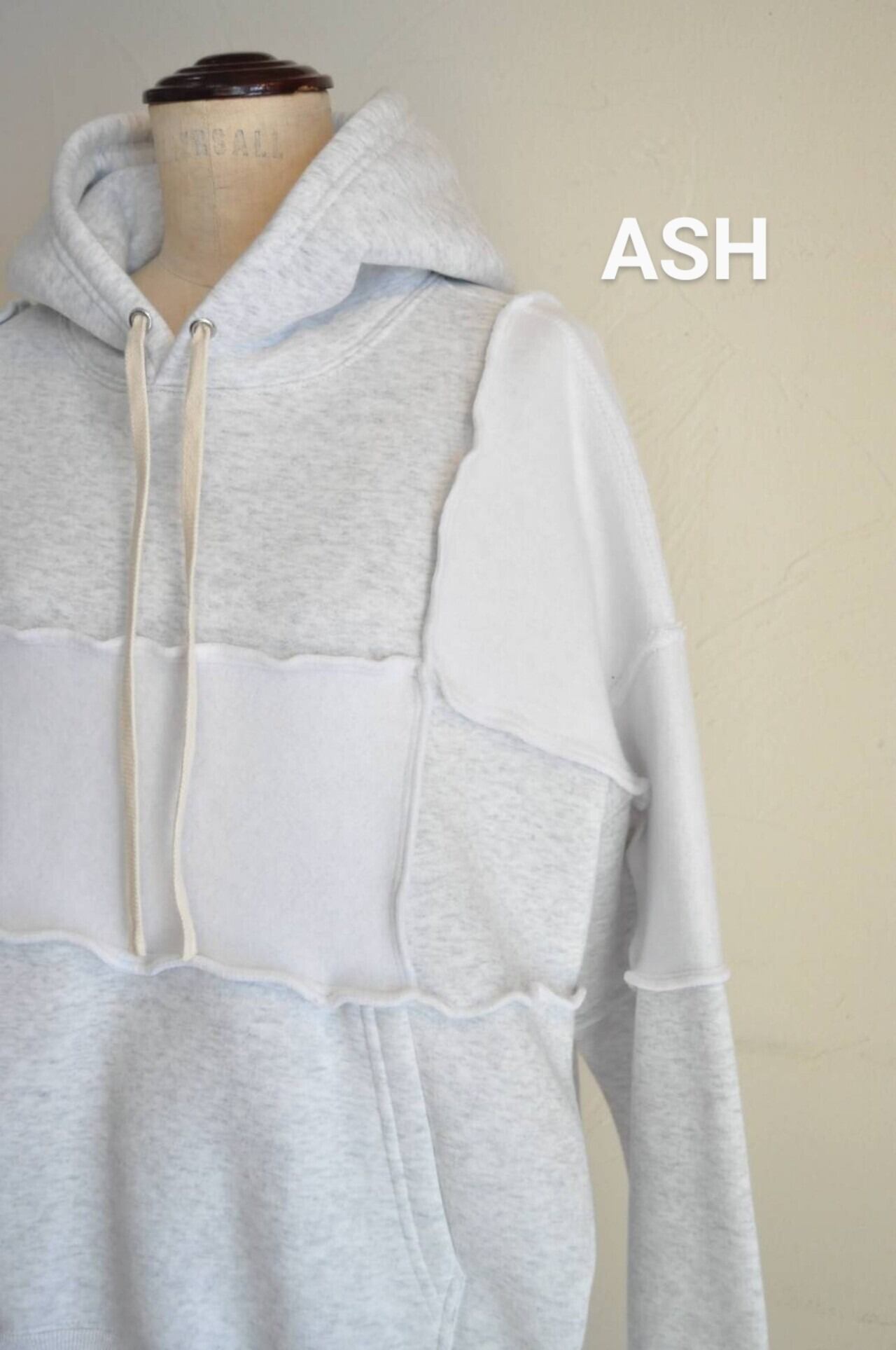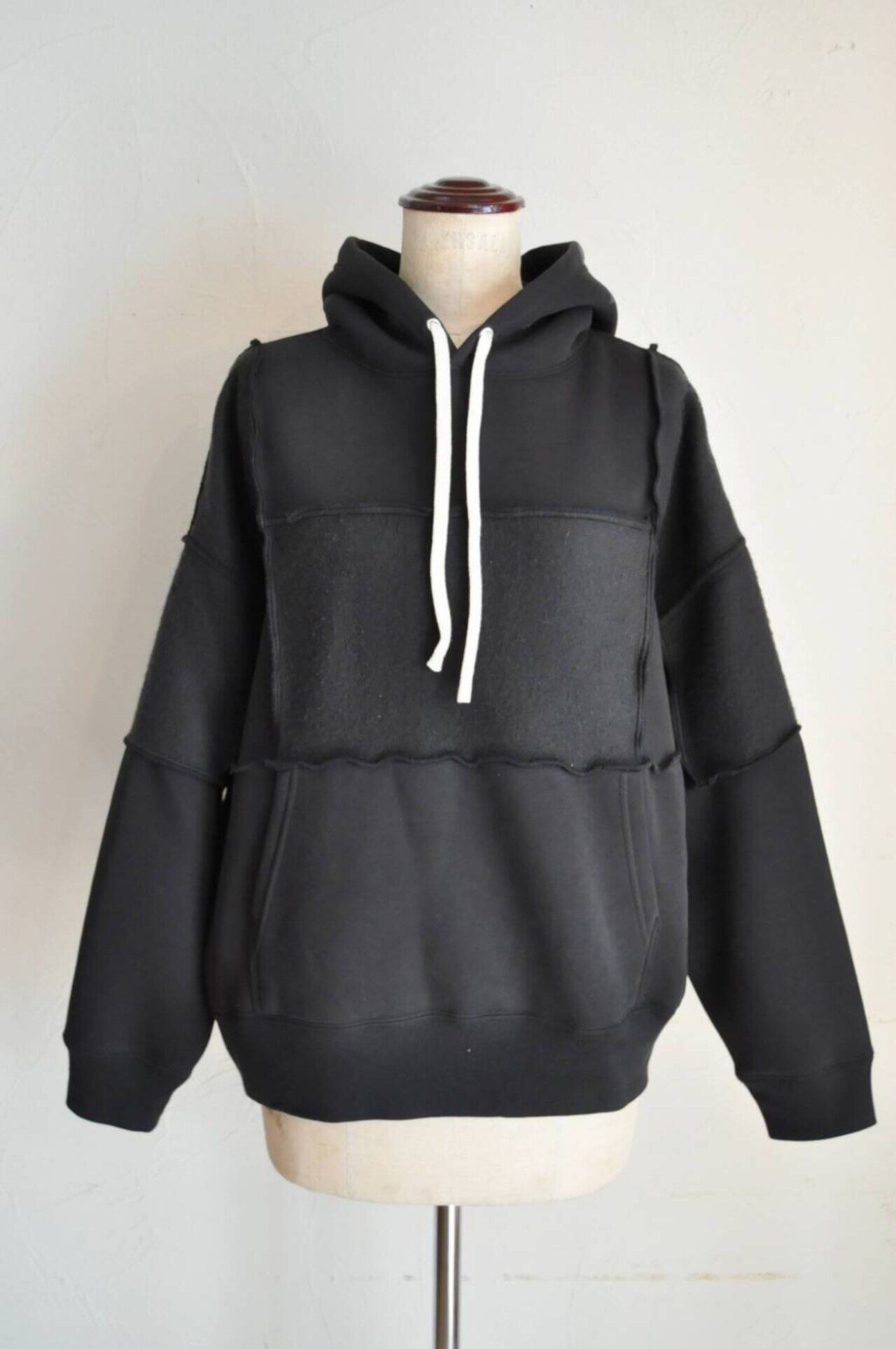 パネル毎に裏と表を互い違いに組み合わせたシンプルながらも一癖あるリハーズオールさんらしいスウェットパーカーです♪