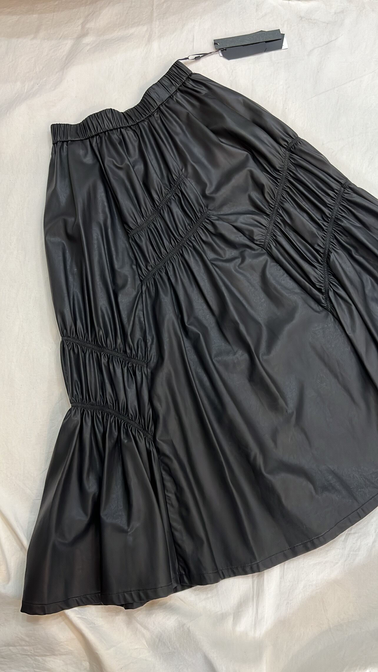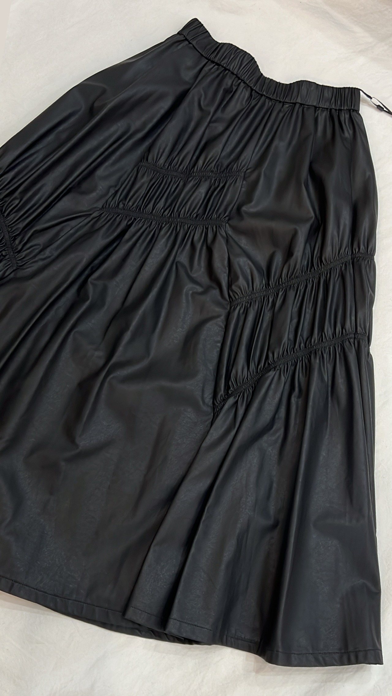 【 MICALLE MICALLE 】フェイクレザーランダムタックスカート (MMJ148SCD)