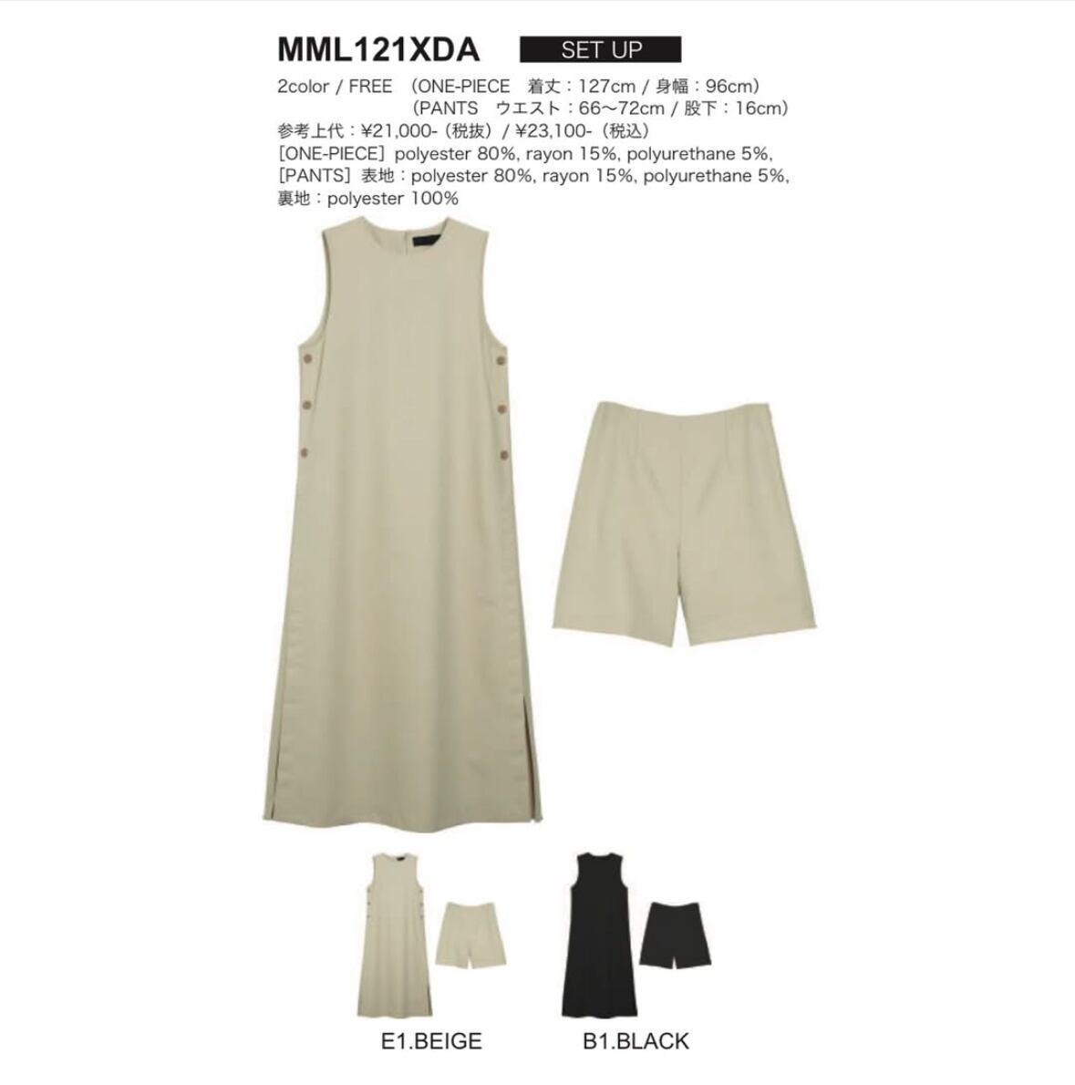 [ONE-PIECE] polyester 80%, rayon 15%, polyurethane 5%, [PANTS] 表地 : polyester 80%, rayon 15%, polyurethane 5%,
