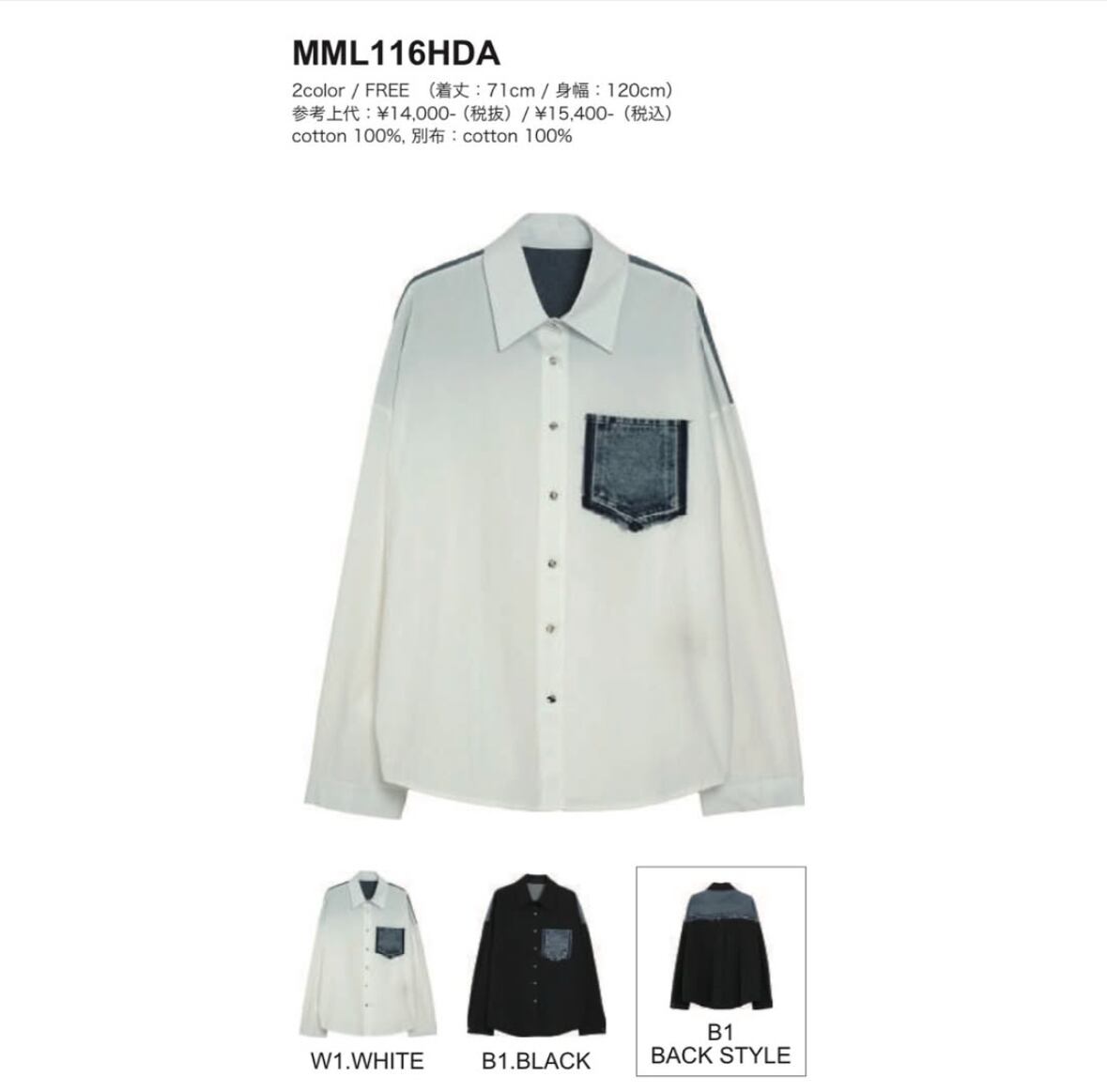予約販売【 MICALLE MICALLE 】デニムドッキングシャツ ( MML116HDA)1月下旬入荷お届け