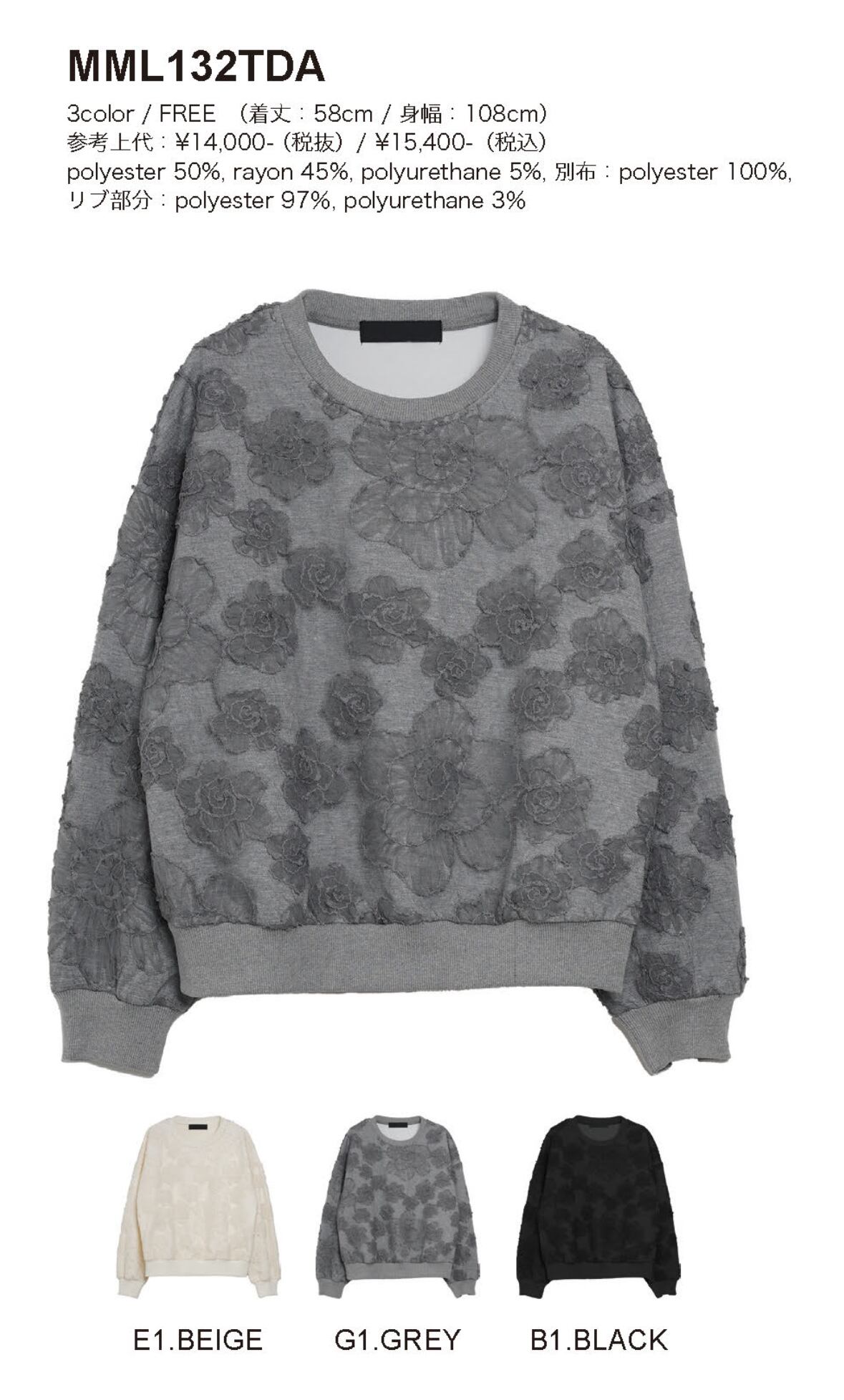 【 MICALLE MICALLE 】フラワージャガードレースレイヤードPO ( MML132TDA)