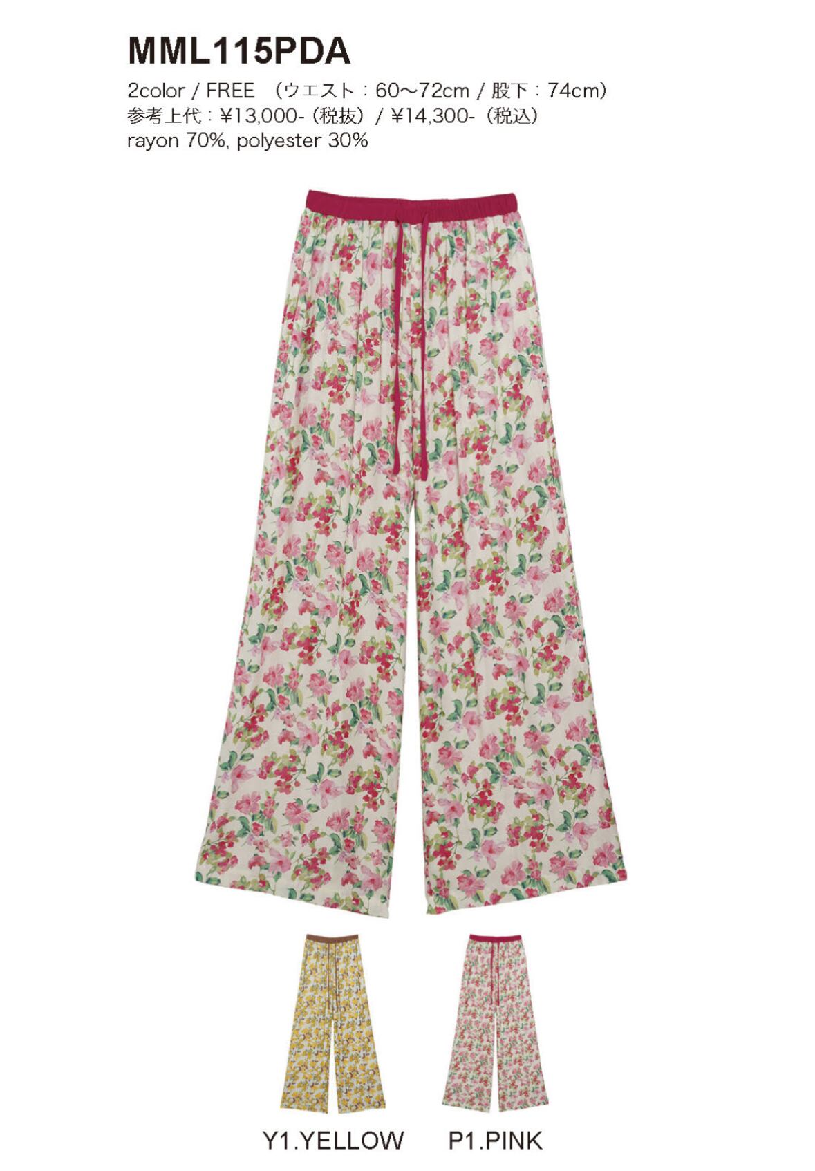 予約販売【 MICALLE MICALLE 】フラワープリントワイドパンツ ( MML115PDA)1月下旬入荷お届け