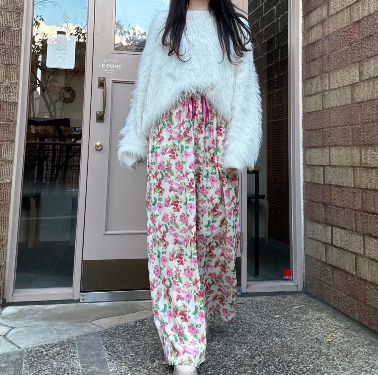 フラワープリントワイドパンツ