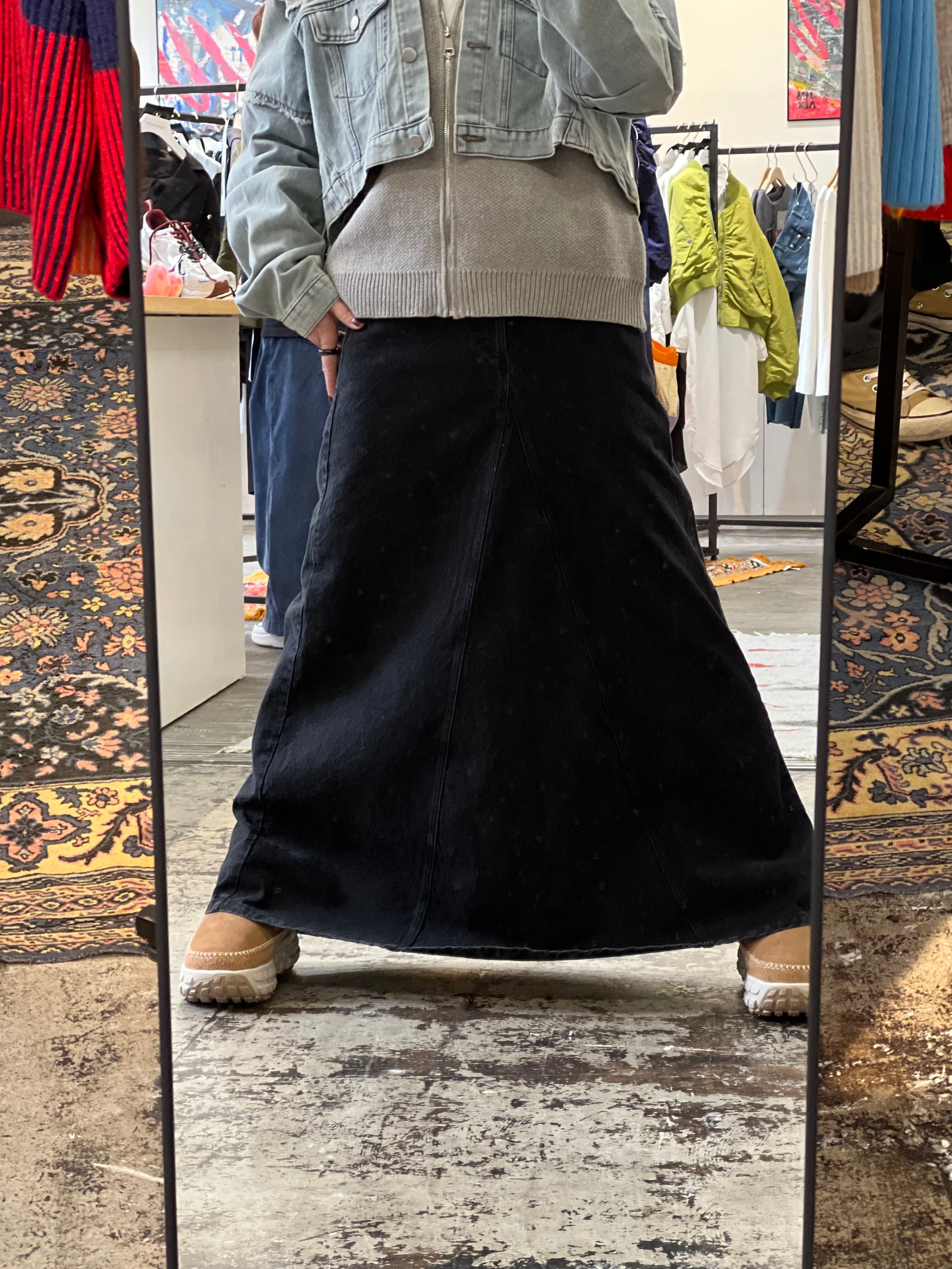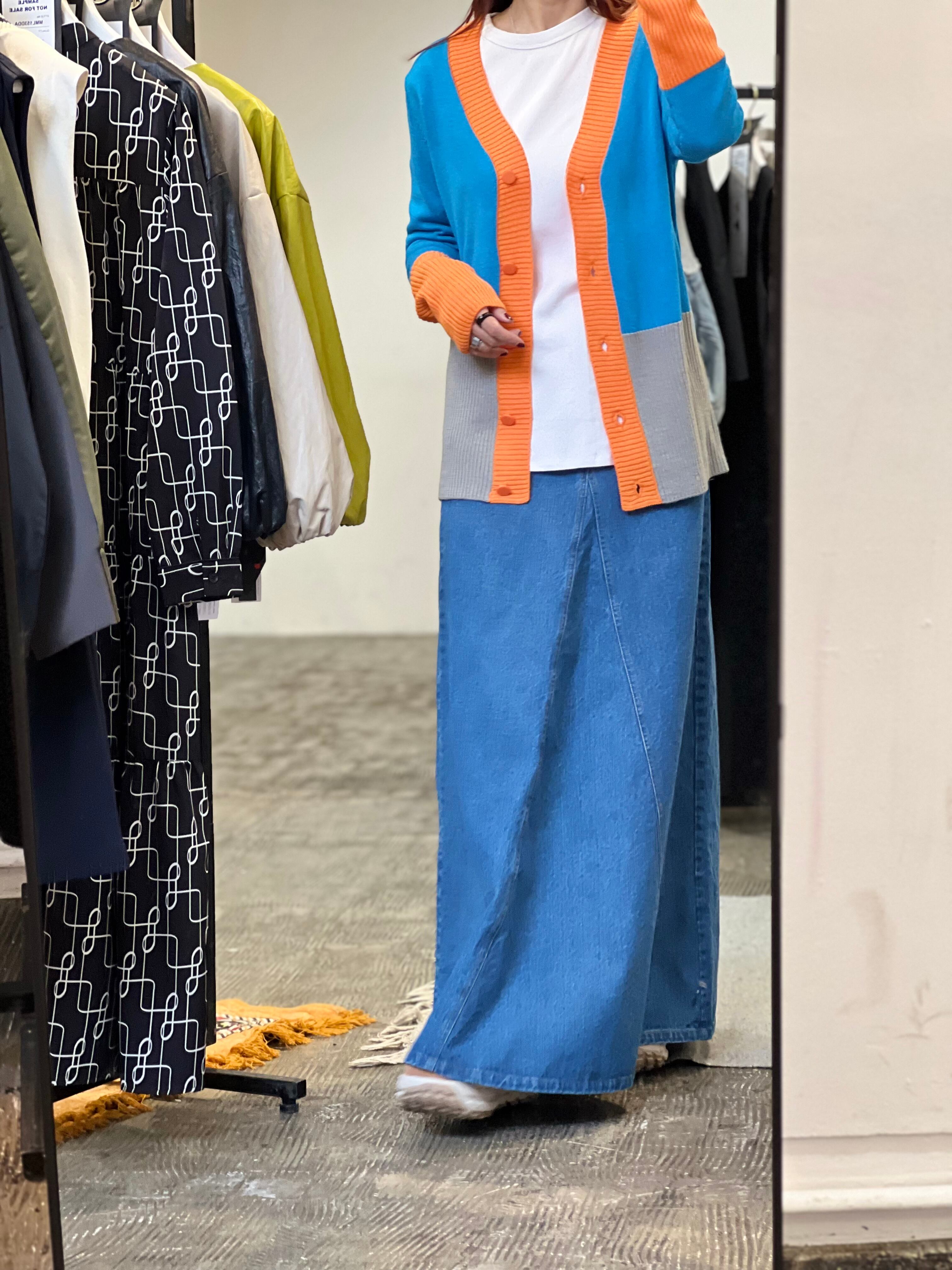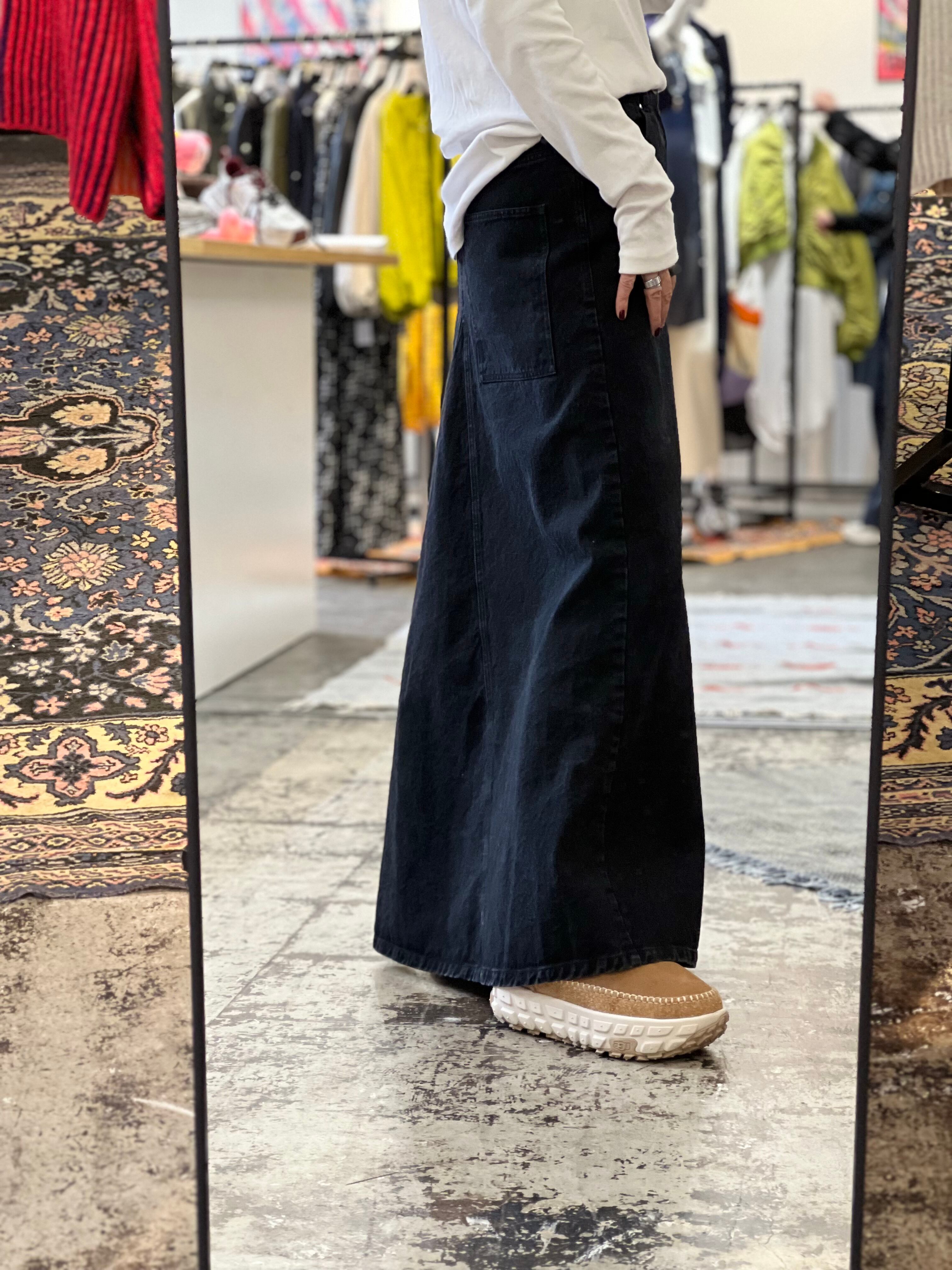 全体も見せても、ヒップまで隠れるトップスを合わせても細見えでスタイルアップしてくれるロングスカートです!