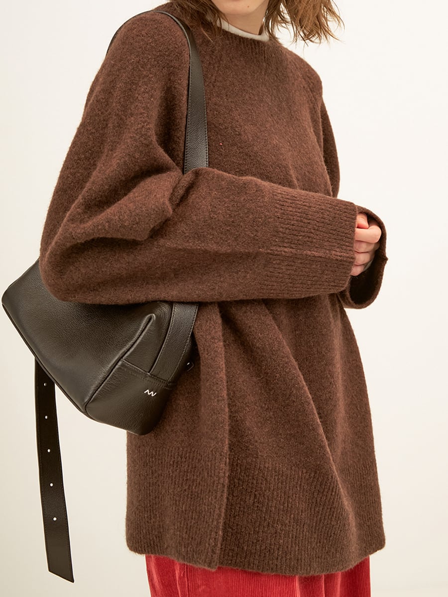 角の無い丸みのあるフォルムがポイントのクロスボディバッグです。