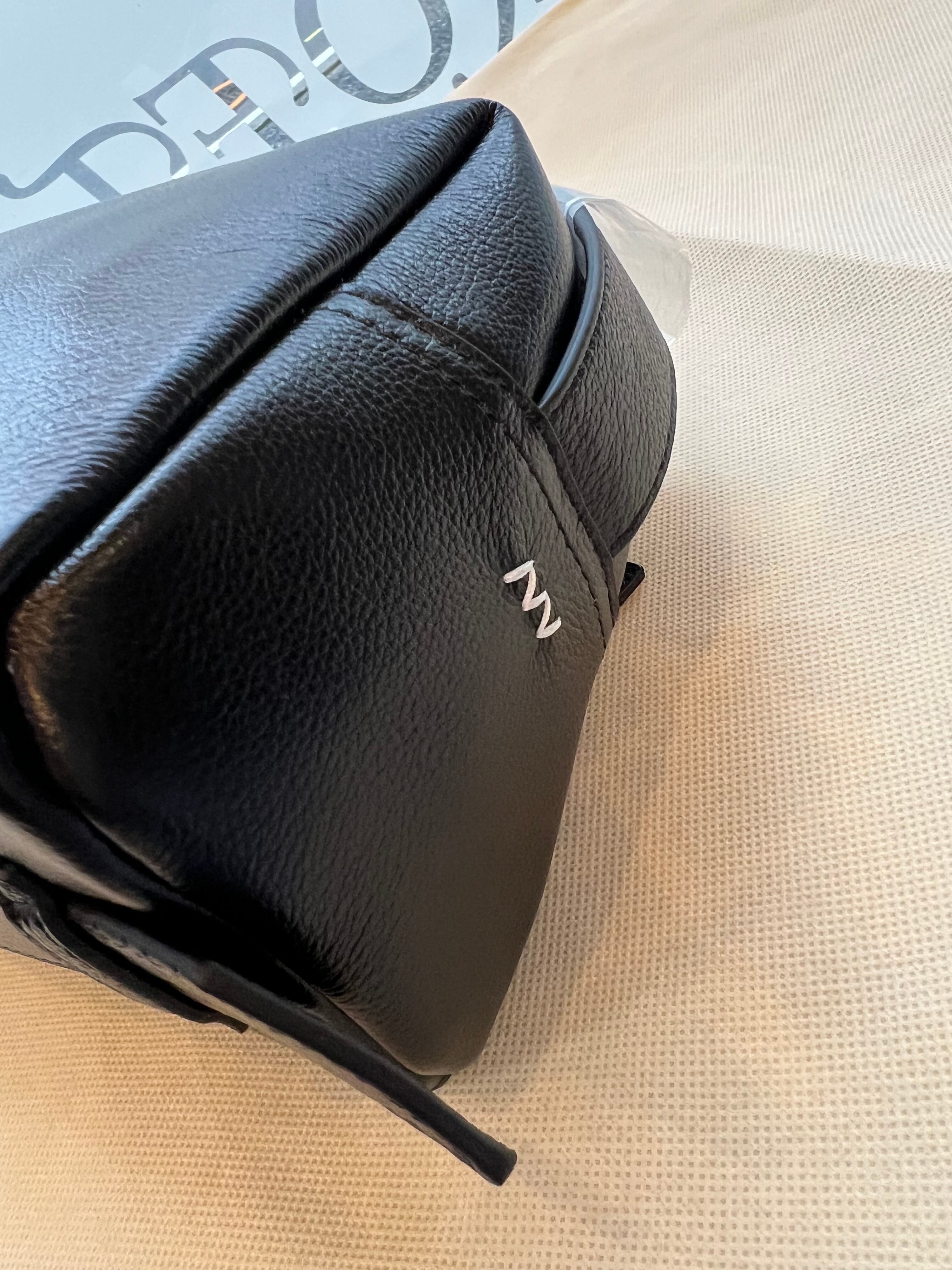 背面にはファスナーポケットを付けているので、頻繁に出し入れしたいスマートフォンやリップクリームなどを収納するのに便利です。 ファスナースライダーと側面に施した配色ステッチもさりげないポイントです。