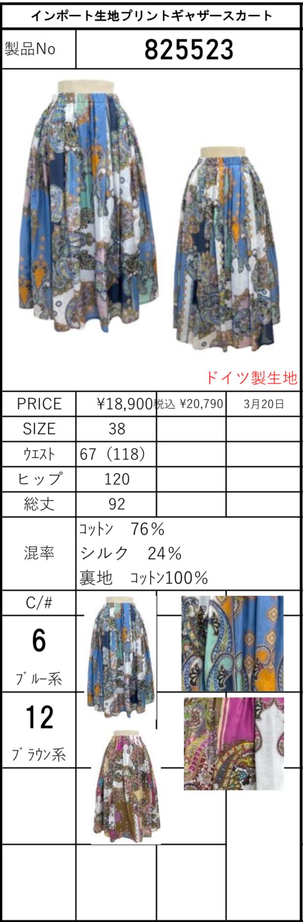 ✨【 ayane 】インポート生地プリントギャザースカート (825523)