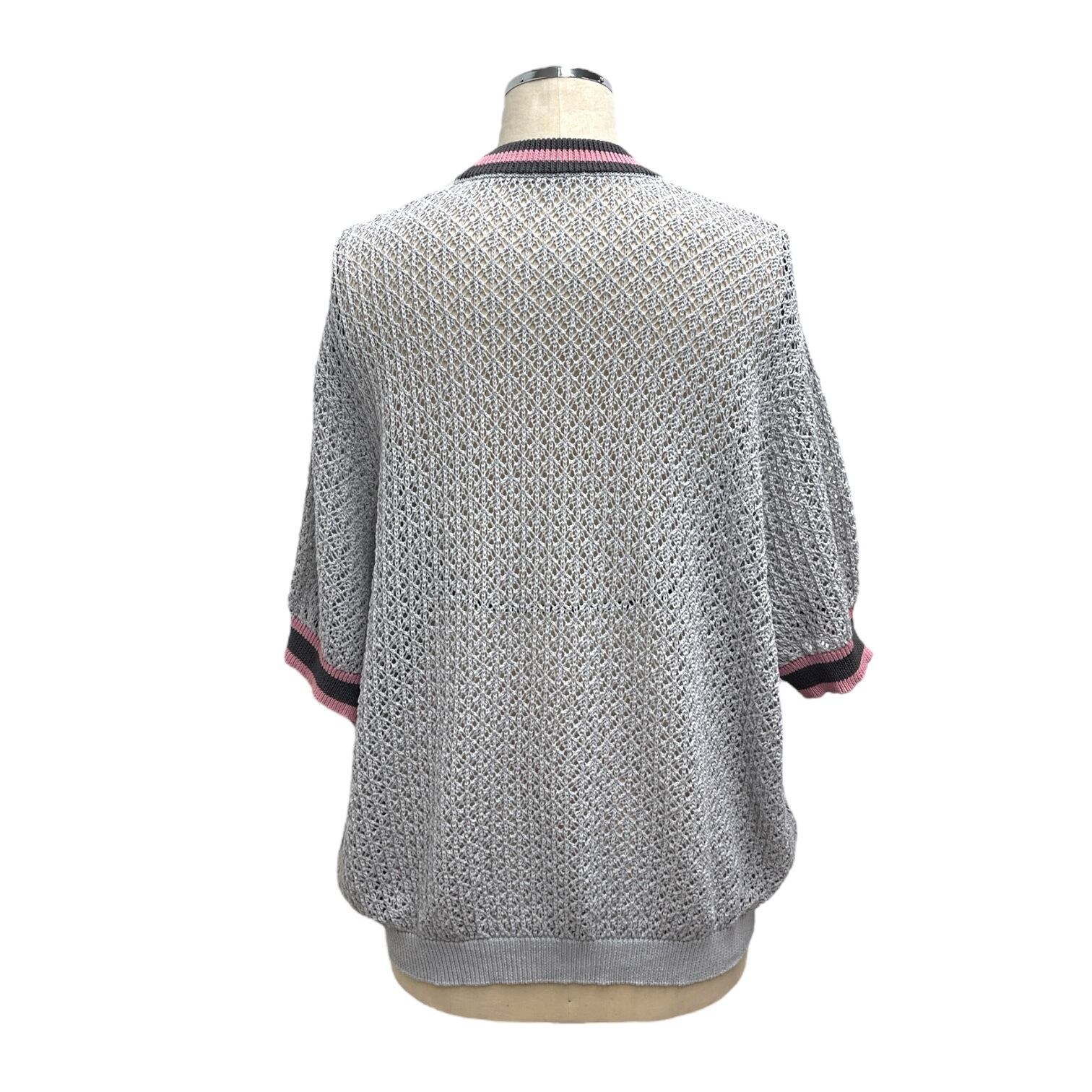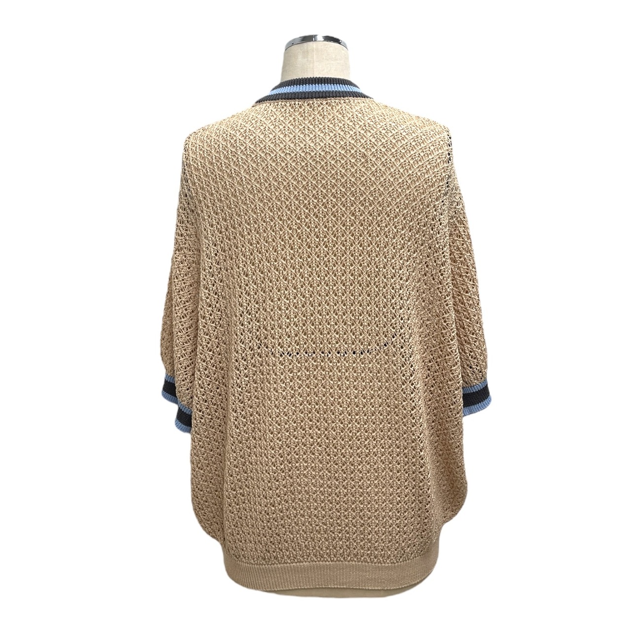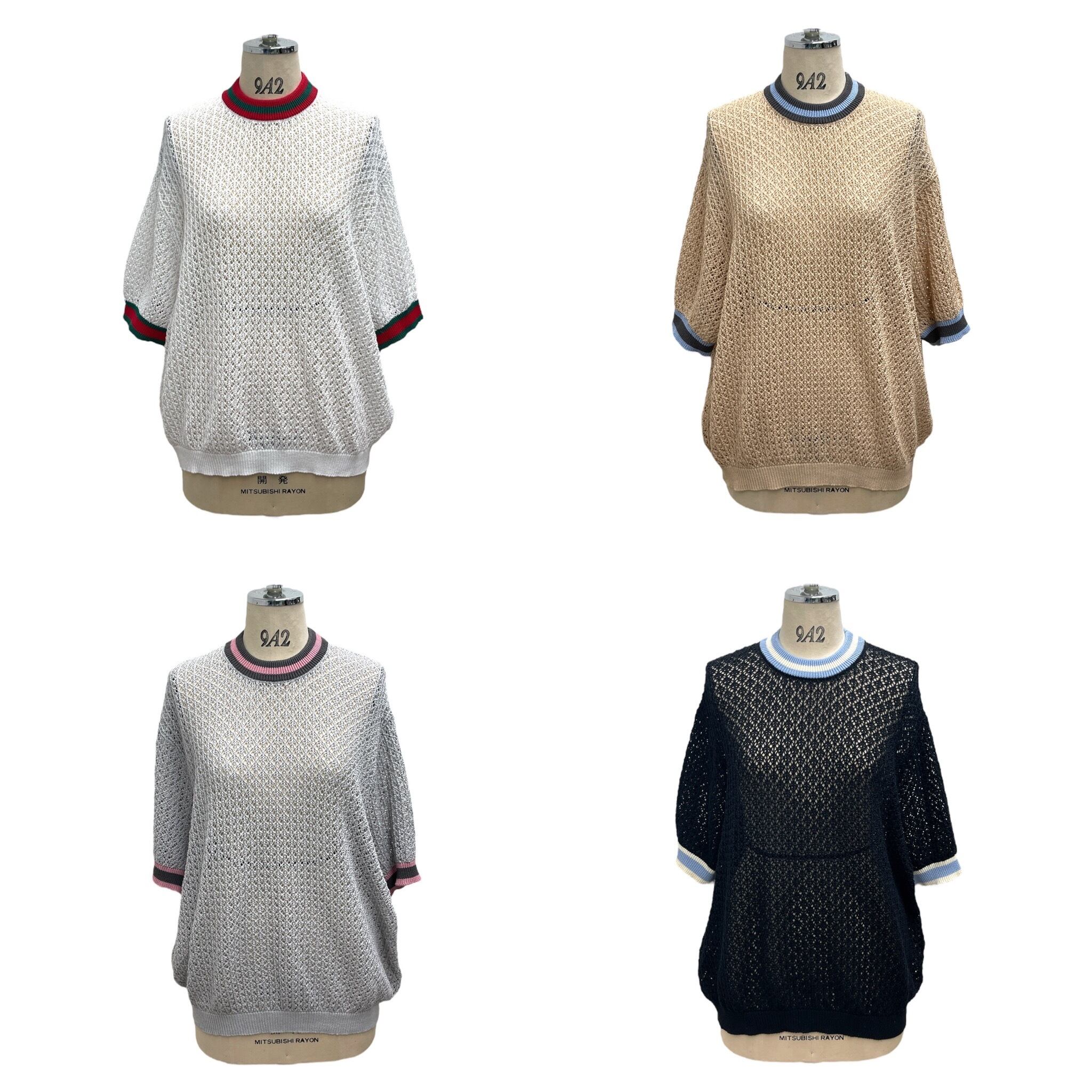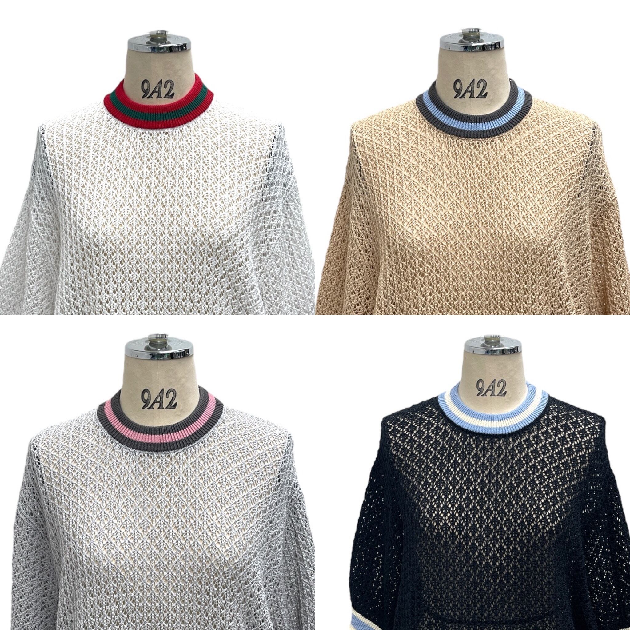予約販売【 ayane 】配色リブ襟 透かし編みニット (825529) 4月お届け