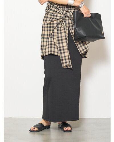 又、デザインポイントとして後ろのスリットにファスナーをつけ、さらにスリットを深く開けて着用できるようにしています。ベーシックで飽きの来ないデザイン、ダブルジャージーのしっかりとした素材など、長く着用していただける要素が多い、使い勝手の良いスカートです。定番のBLACKはもちろん、他にはない絶妙な色合いのD/GRAYもおすすめです。