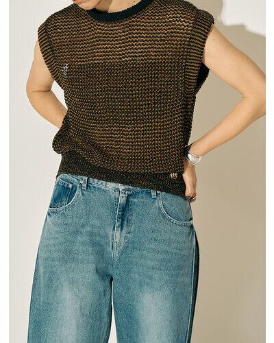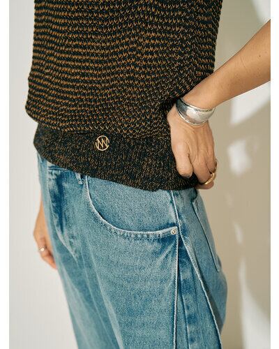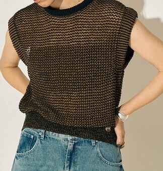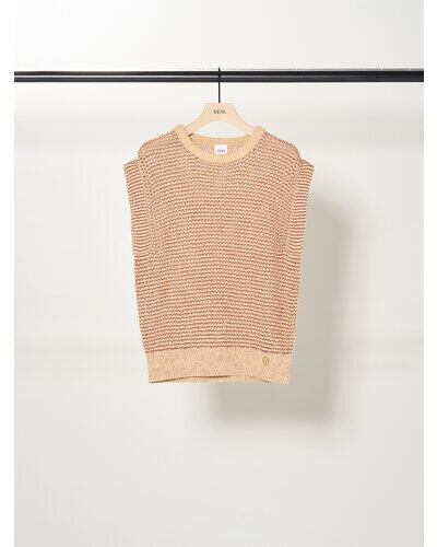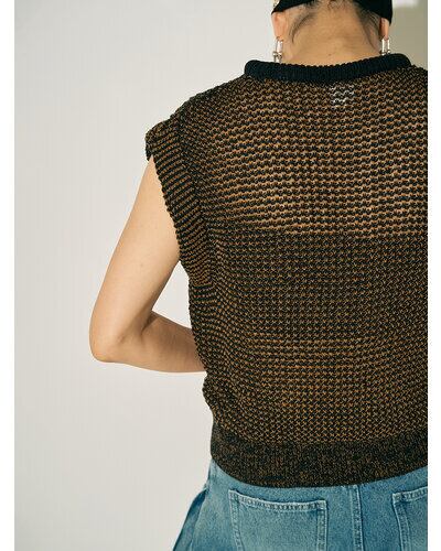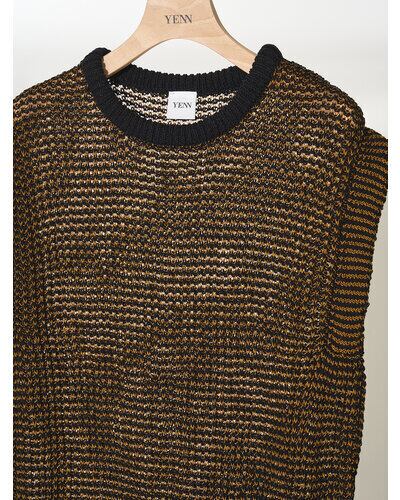 細番手のテープヤーンと、ビスコースのストレート糸をMIXした畦編みニットです。