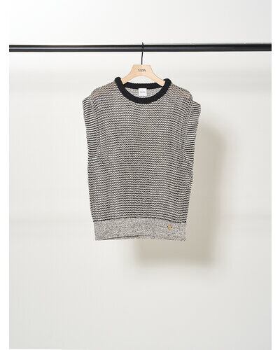 身頃と袖口は細いボーダーのような見え感に、裾はあえて異なる編み地で、1着の存在感が出るようにしています。
