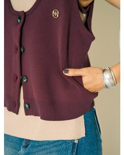 ふんわりとした弾力のある編地が特徴のニットベストです。
