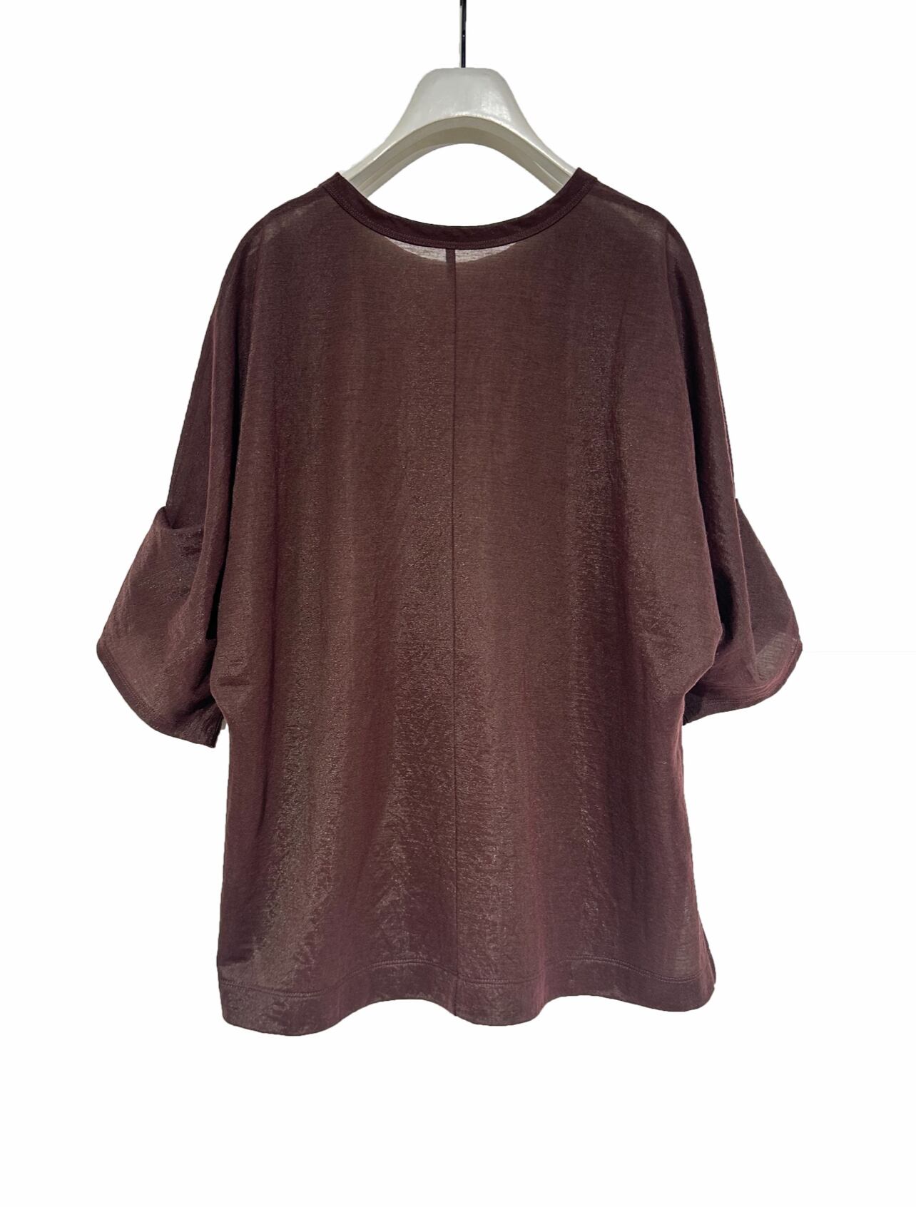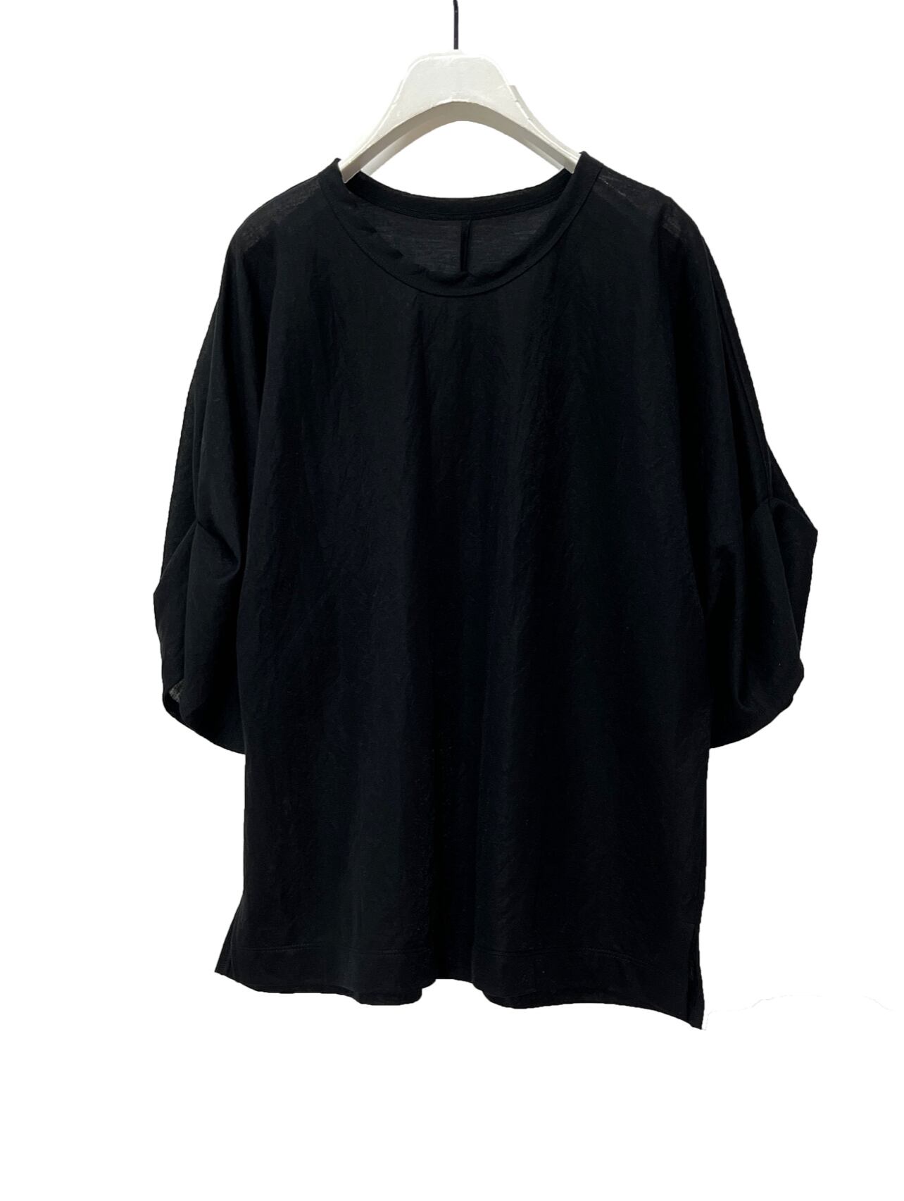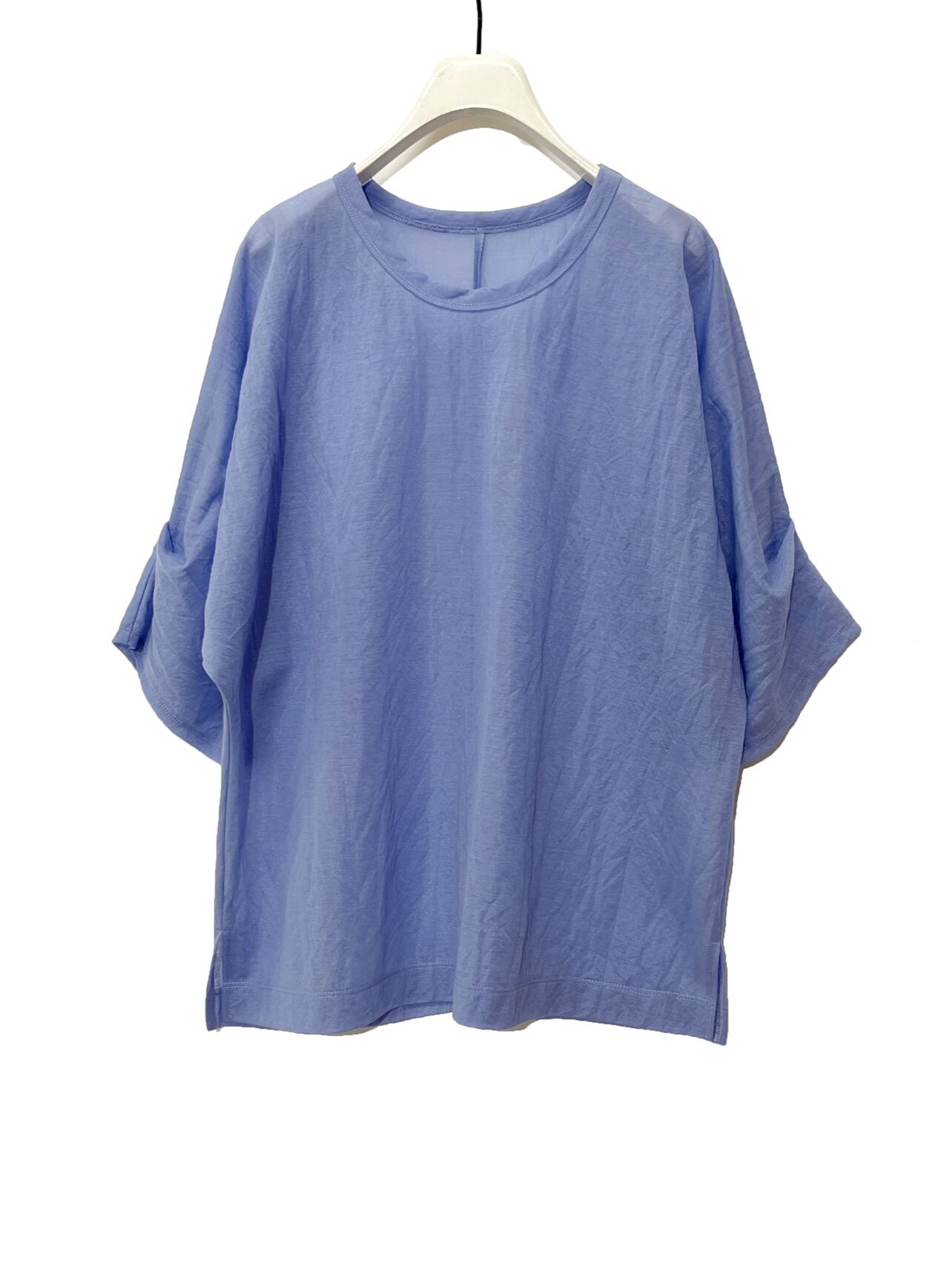 カットソーの着心地の良さがありながらも、布帛のような素材なので、Tシャツでもブラウス見えするアイテムです。