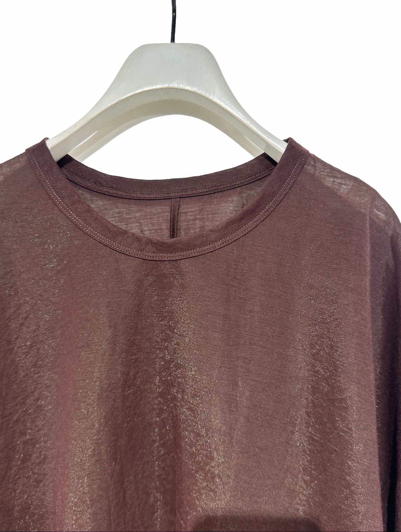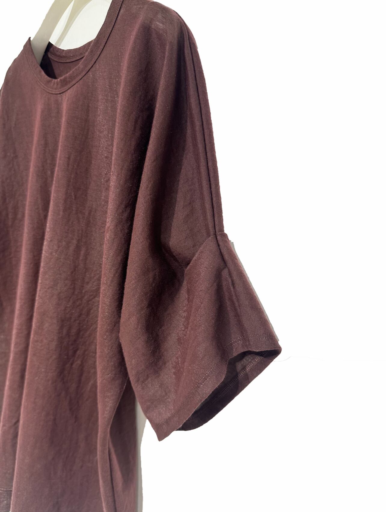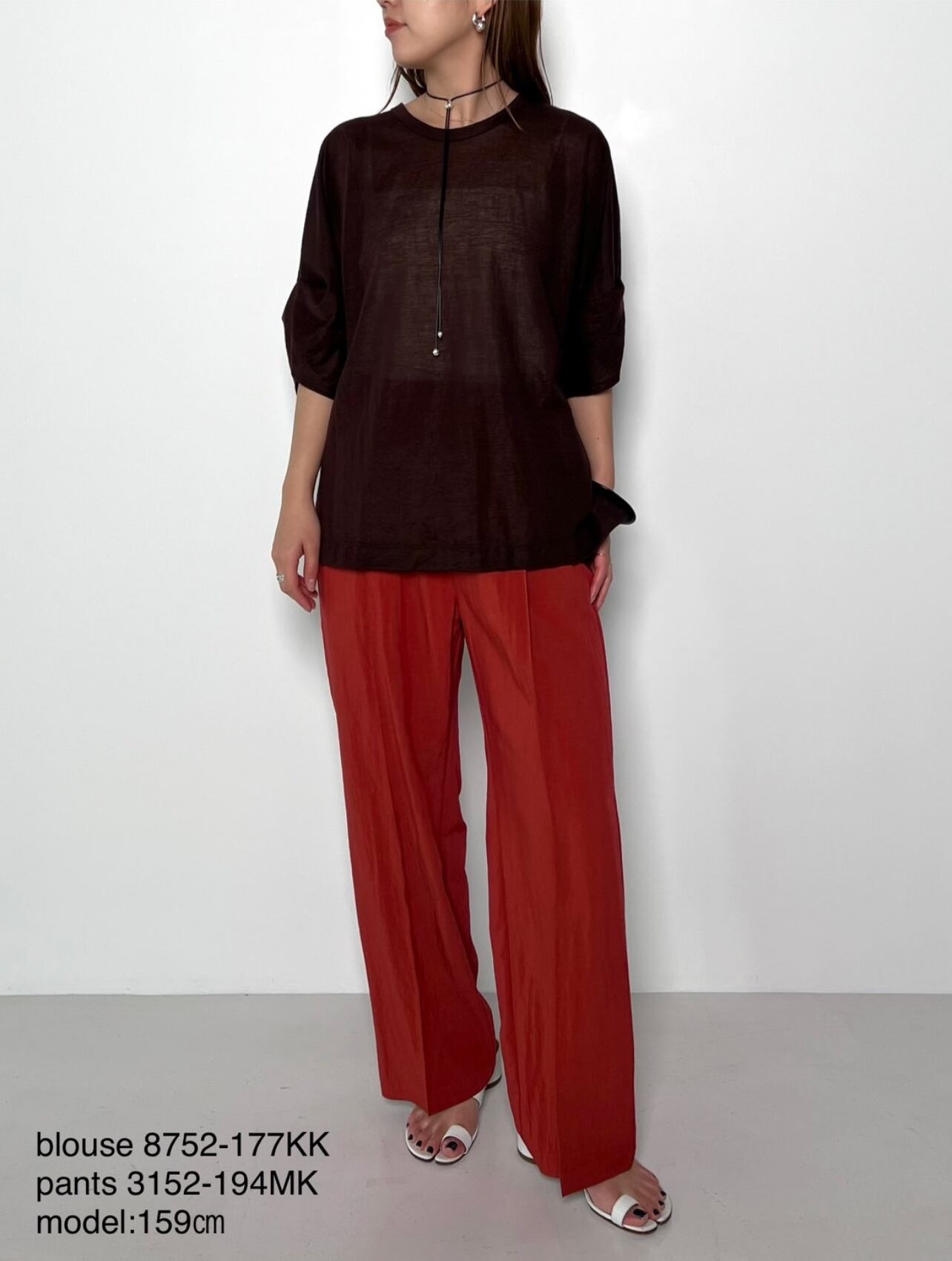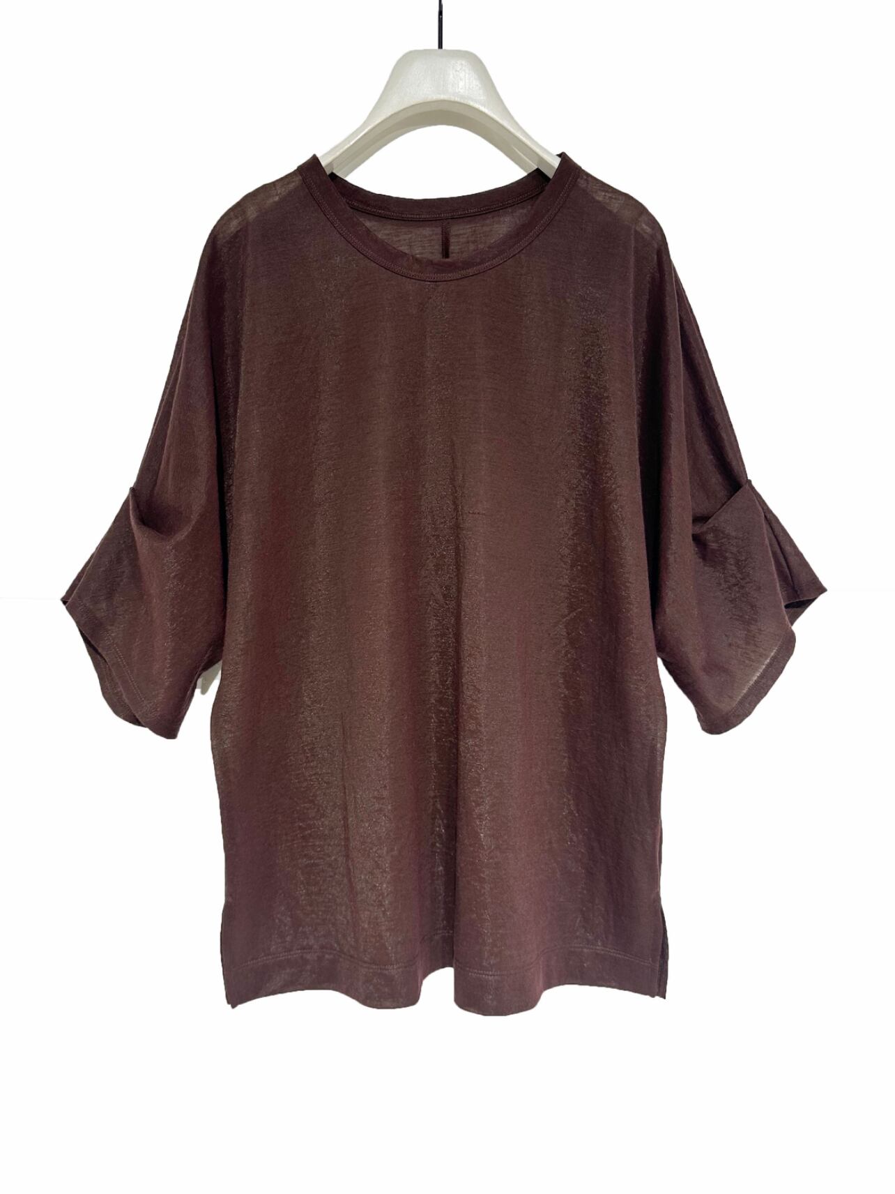 カットソーの着心地の良さがありながらも、布帛のような素材なので、Tシャツでもブラウス見えするアイテムです。