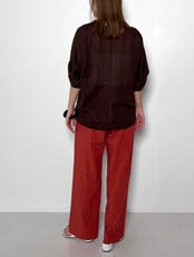 肩から袖口にかけて丸みのあるドルマンスリーブで、袖のタックがポイントになっています。