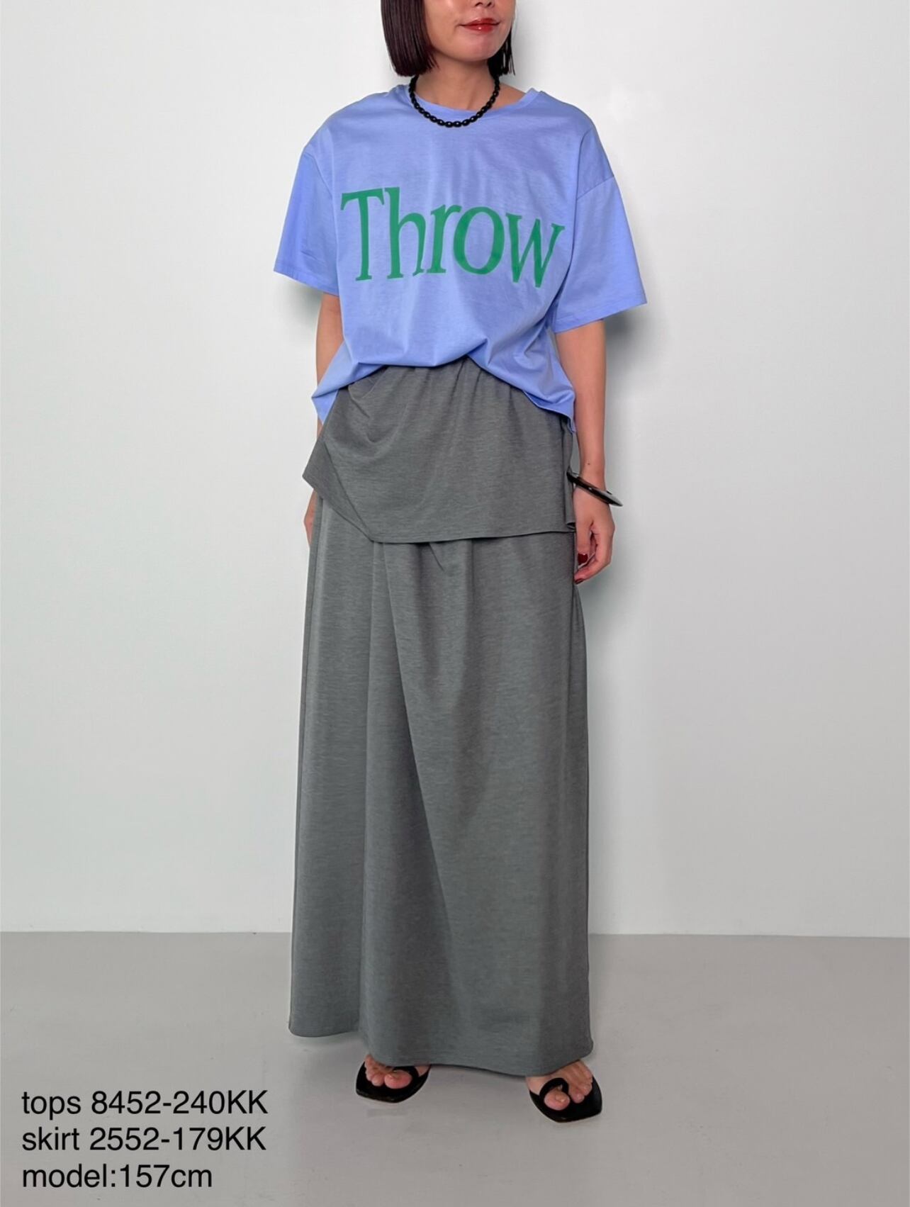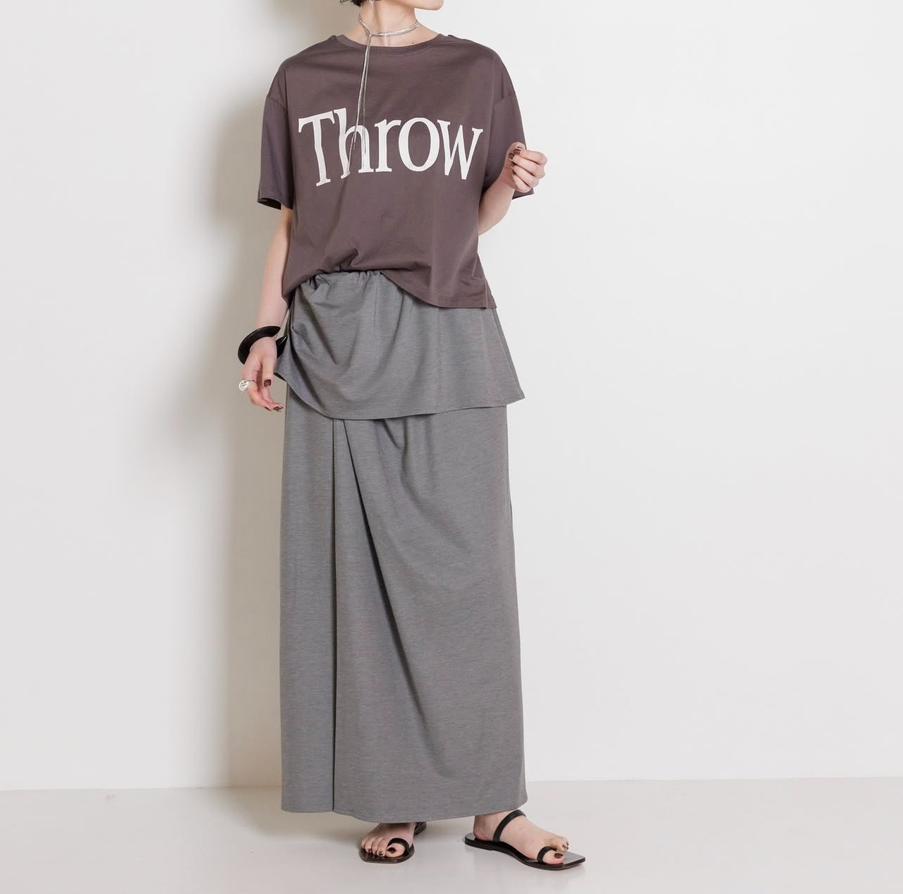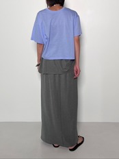 光沢感がある表面感が綺麗なスムースを使い、カットソー素材ながらも綺麗に履ける大人スカートにしています。