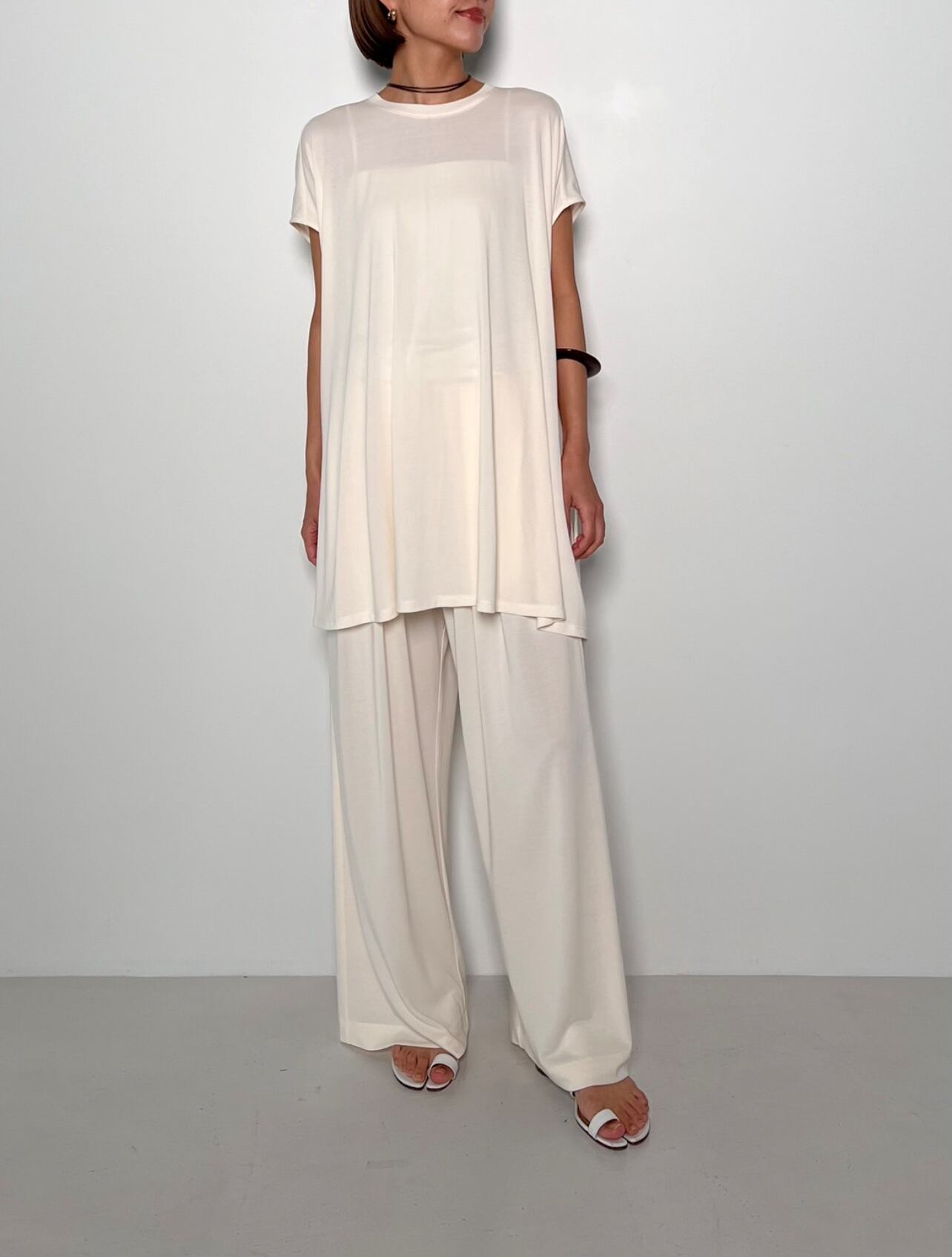 落ち感があり、肌触りが柔らかな綺麗めカットソーを使用しています。