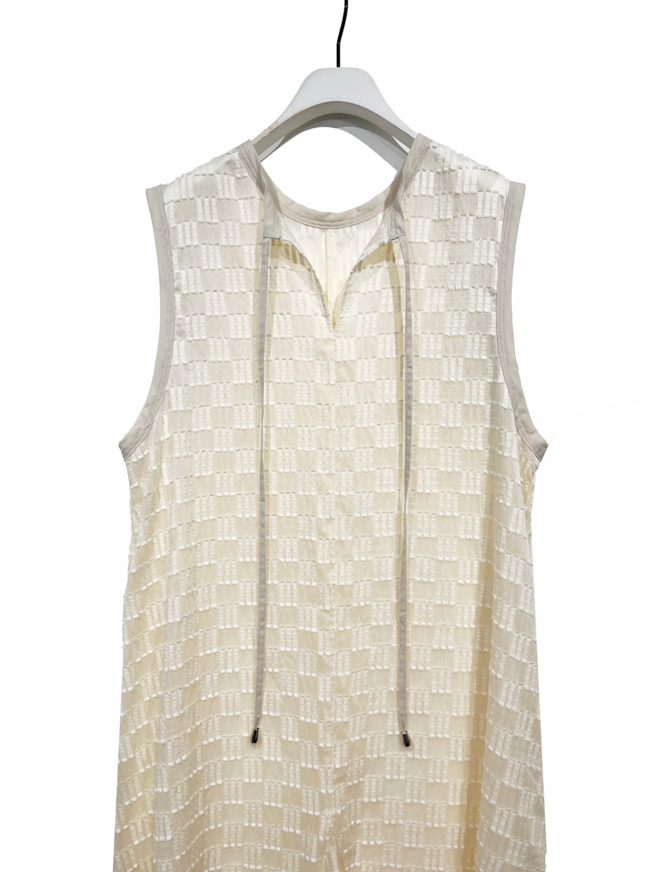 前後着用可能なのと、衿ぐりの紐をチョーカーのように自由に首に巻き付けたり、