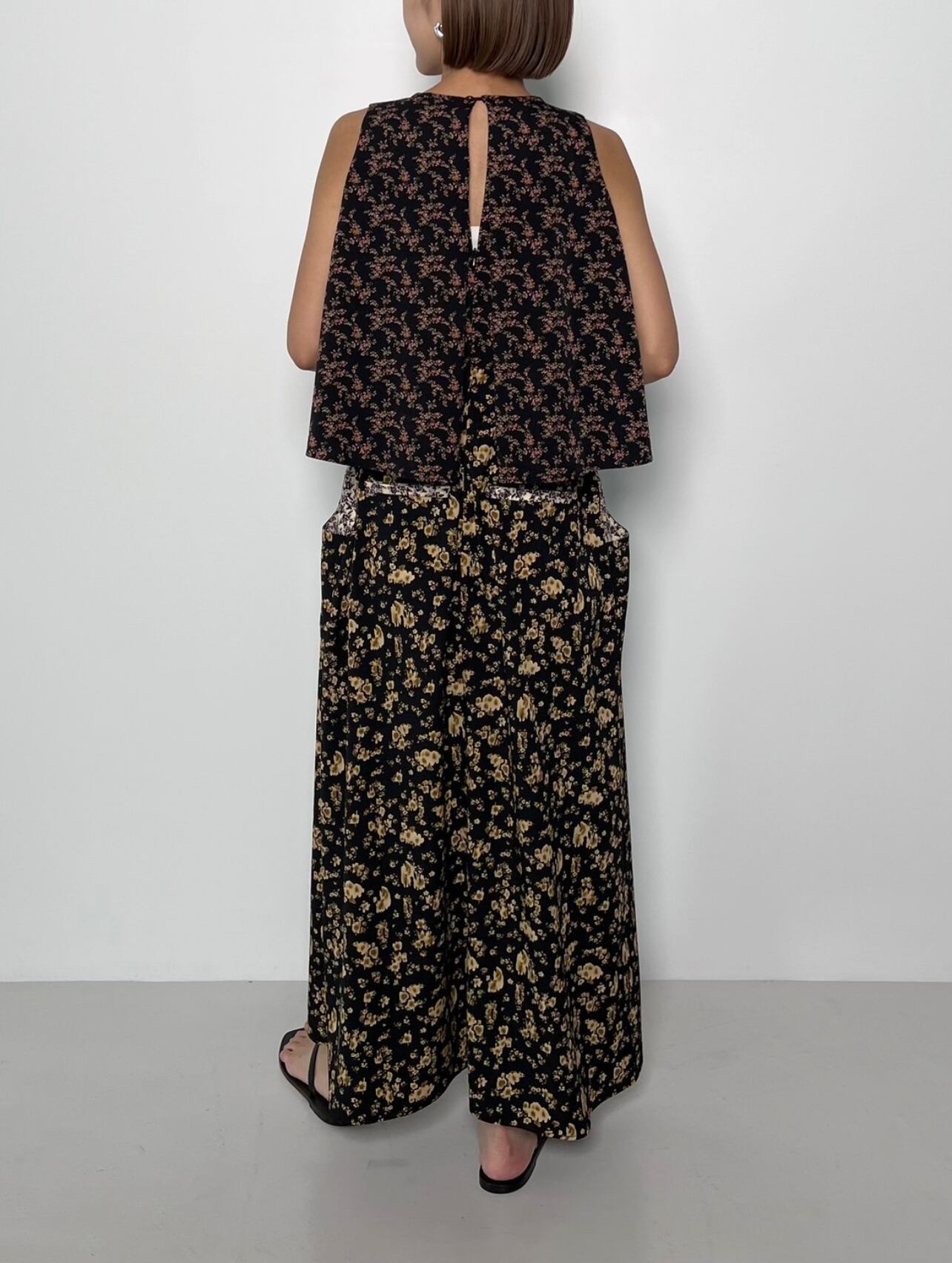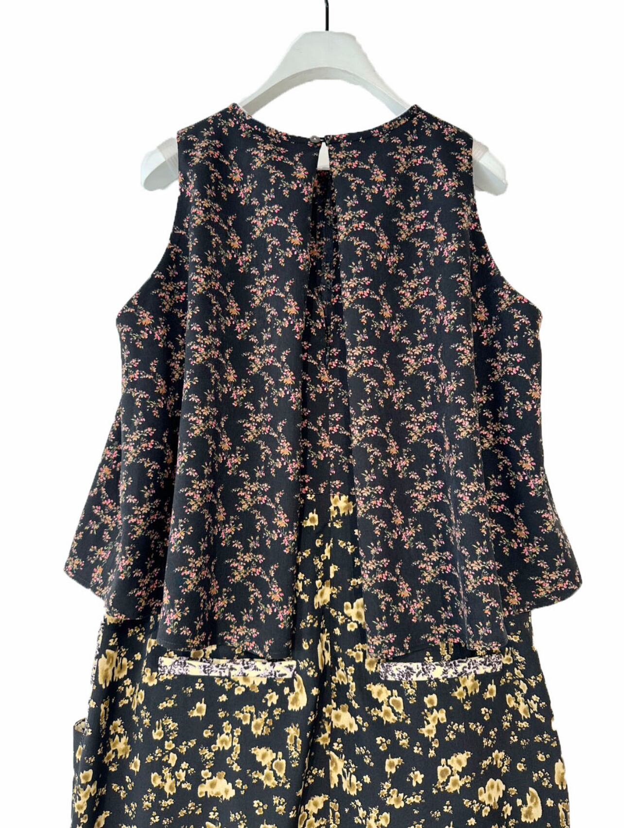 様々な花柄を組み合わせたパターンミックスのワンピースです。