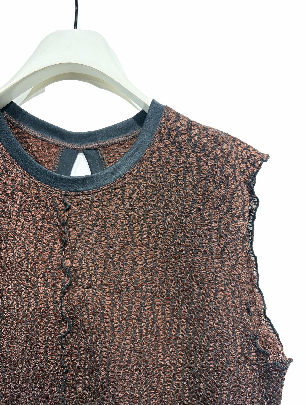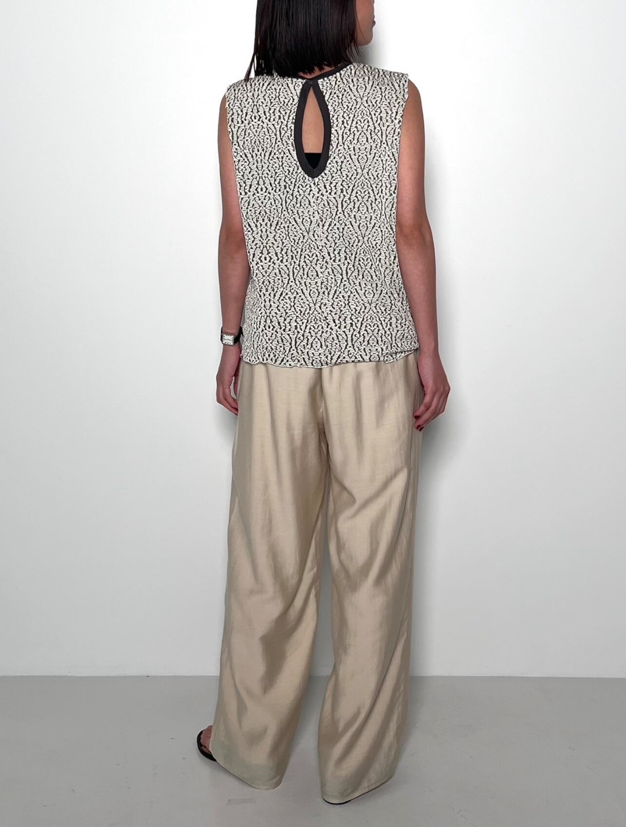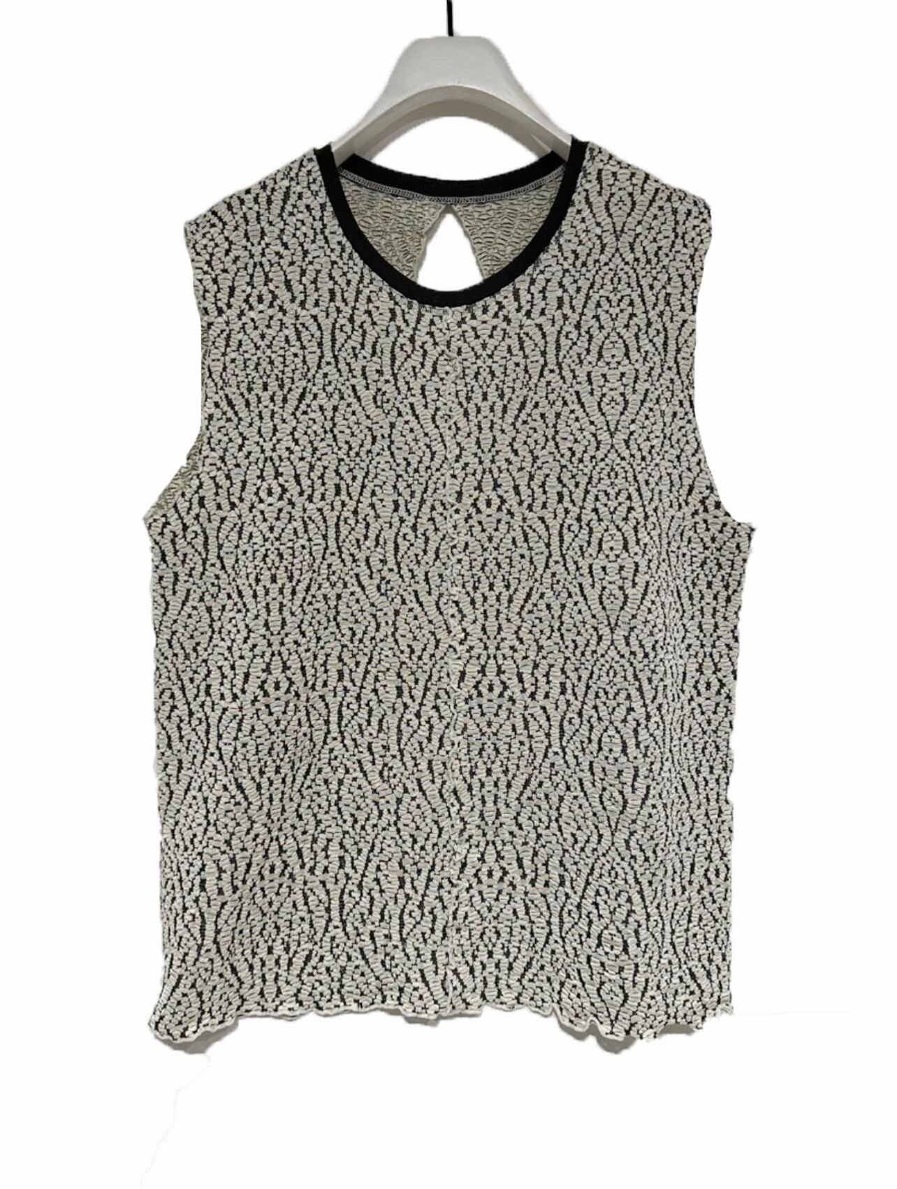 ジャガードのような表面感があるカットソーを使用したノースリーブです。