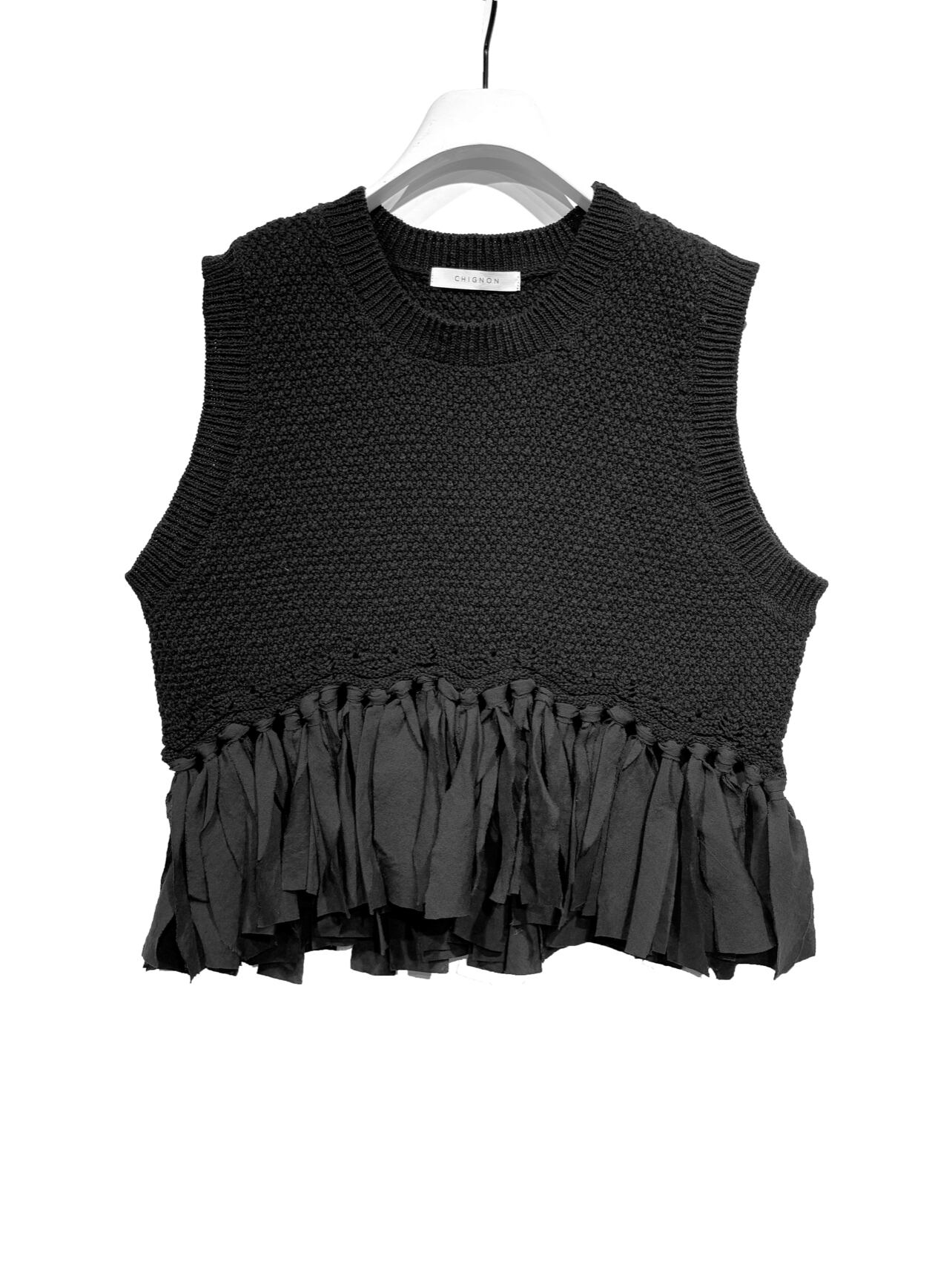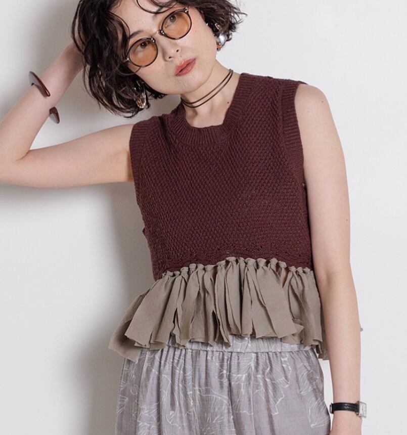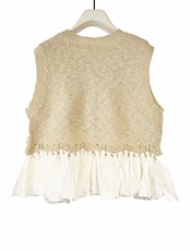 予約販売【 chignon 〜YENN〜 】[9452-235DP] 布帛ドッキンクニットベスト 4月お届け
