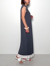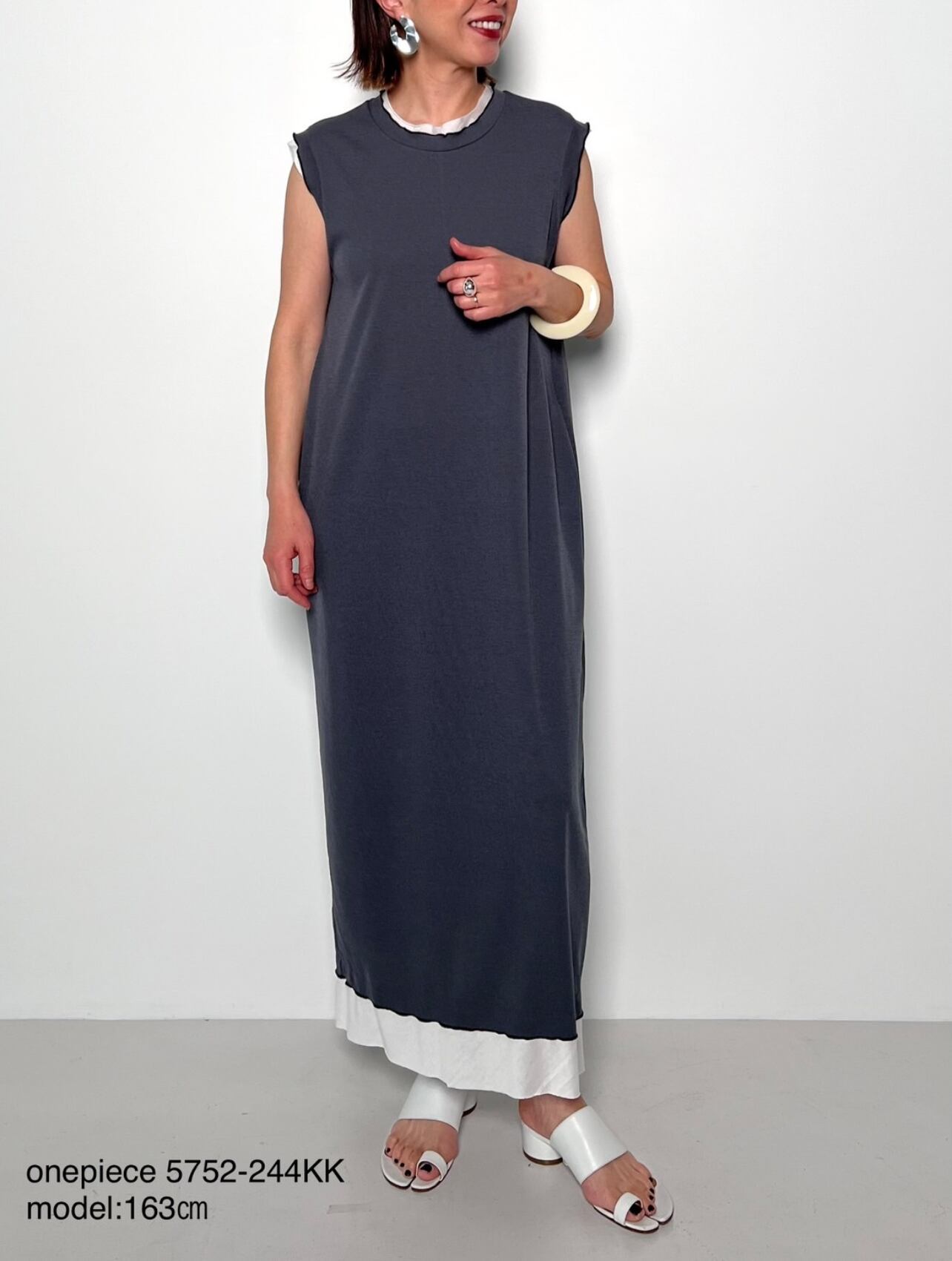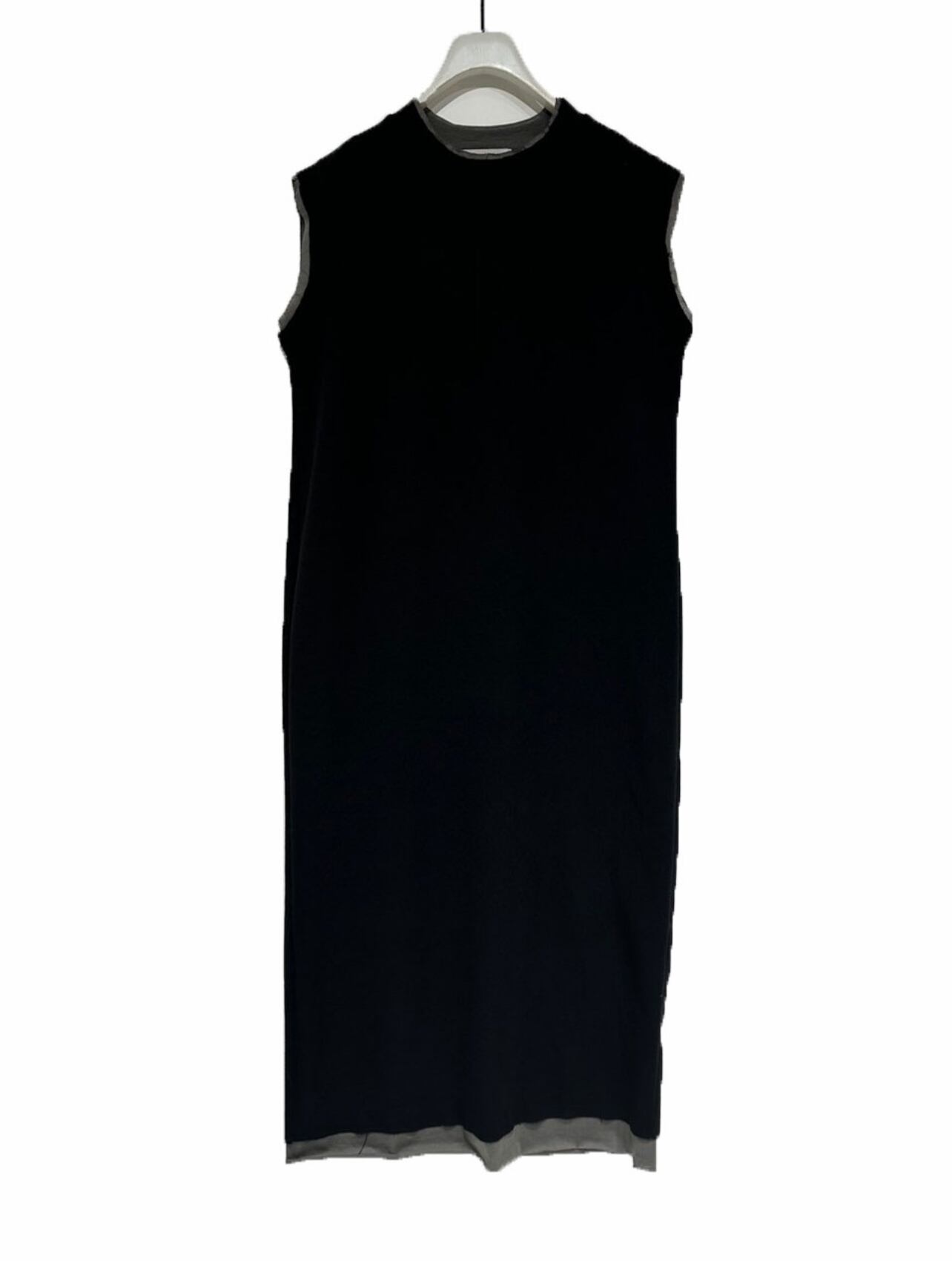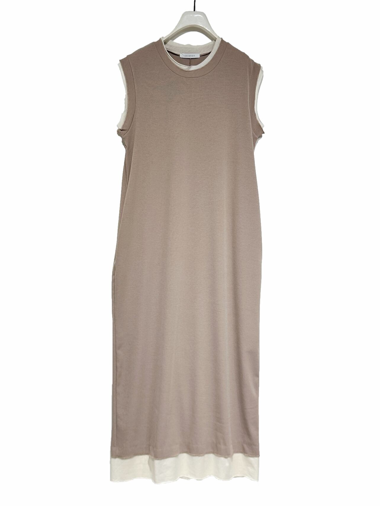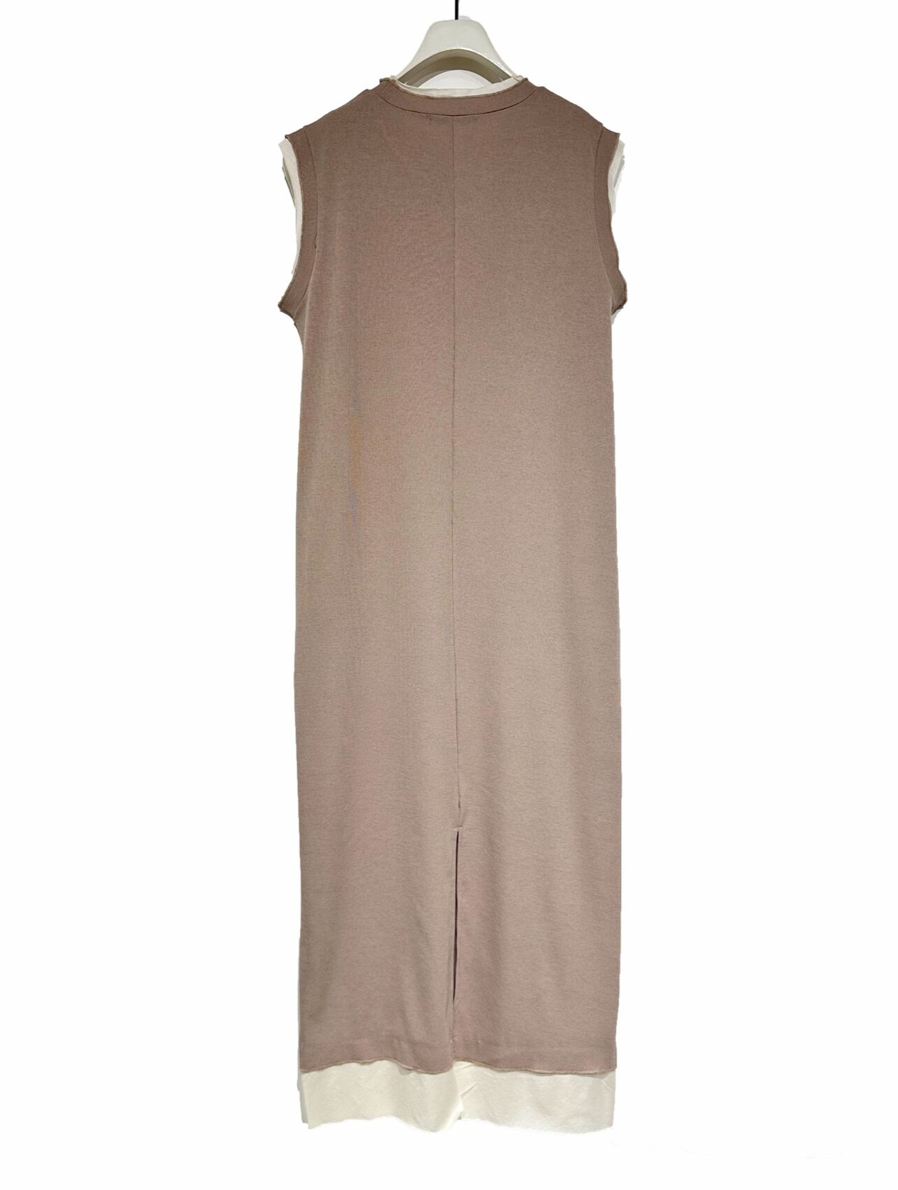 2着のワンピースをレイヤードしたようなデザインの、バイカラーリブワンピースです。