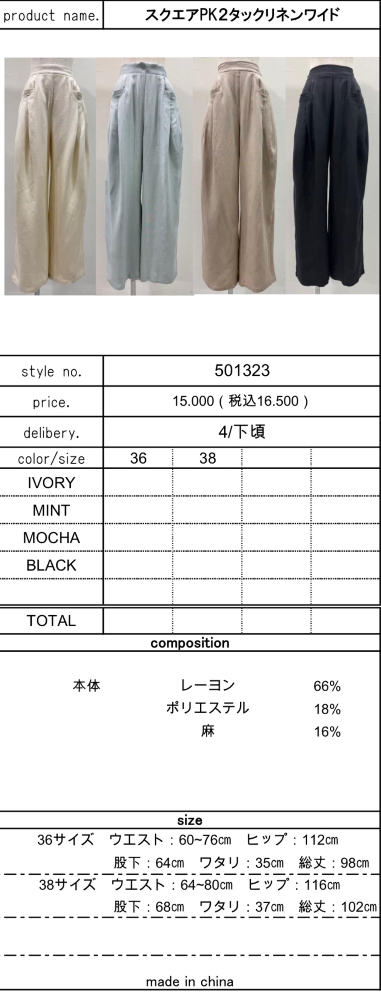 予約販売【 CYAN TOKYO 】スクエアPK2タックリネンワイド (501323) 4月お届け