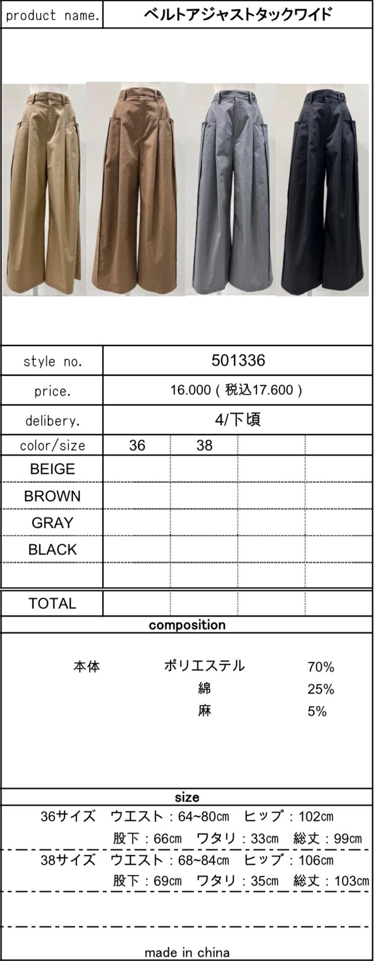 予約販売【 CYAN TOKYO 】ベルトアジャストタックワイド (501336) 4月お届け