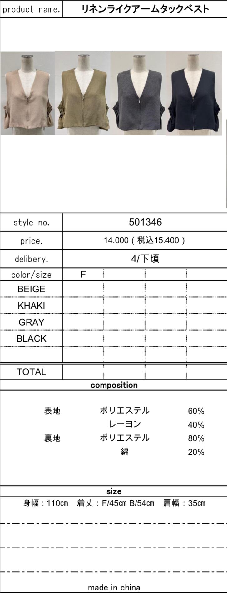 リネンライクアームタックベスト