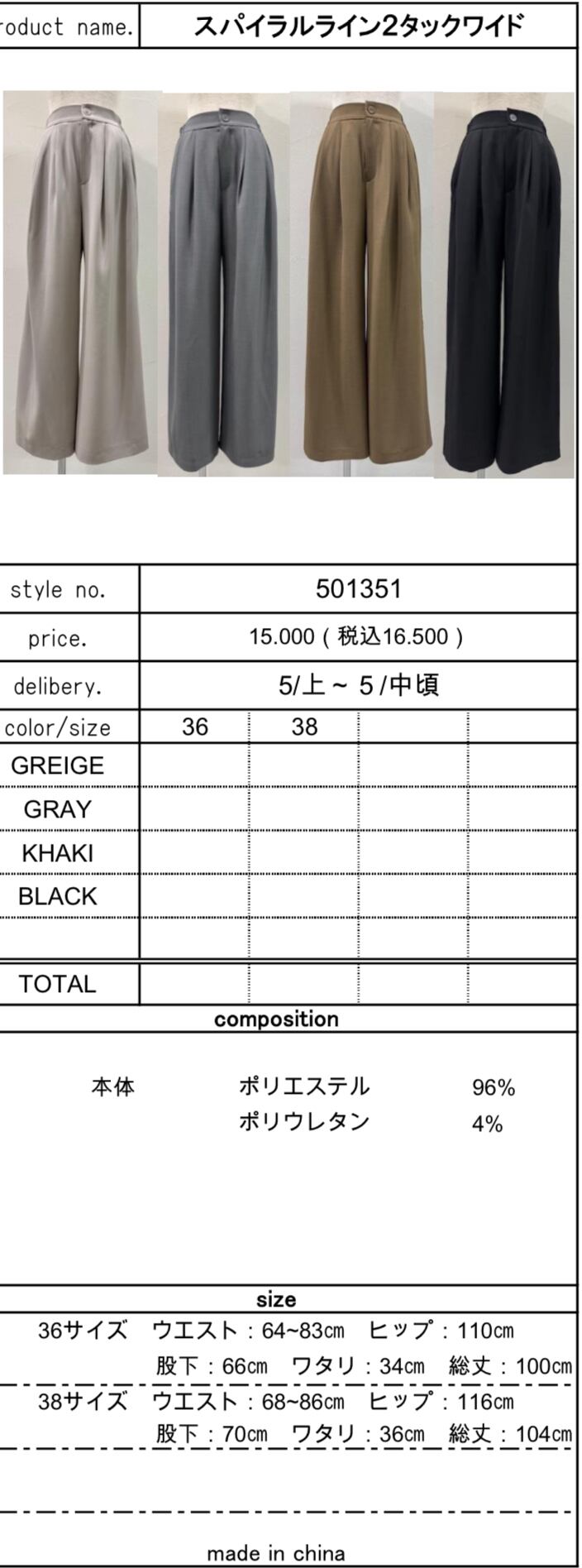 予約販売【 CYAN TOKYO 】スパイラルライン2タックワイド (501351) 4月お届け