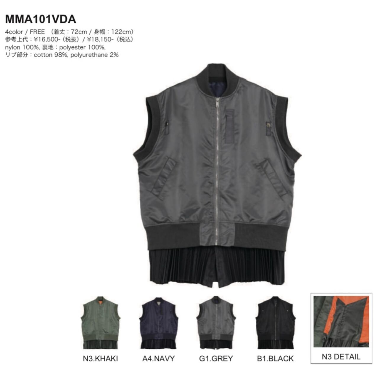 予約販売【 MICALLE MICALLE 】MA-1裾プリーツベスト (MMA101VDA) 2月下旬入荷お届け