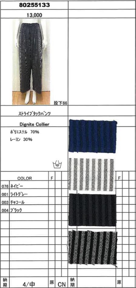 予約販売【Dignite Collier】ストライプタックパンツ (80255133) 4月お届け