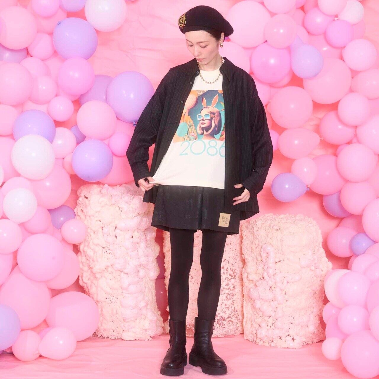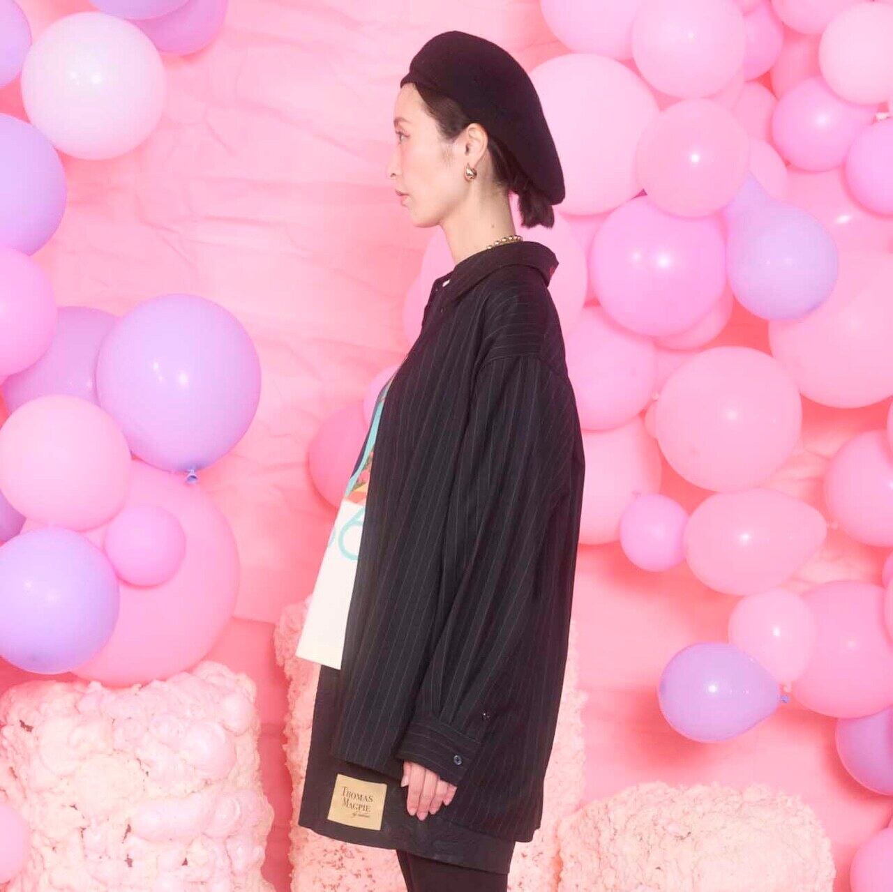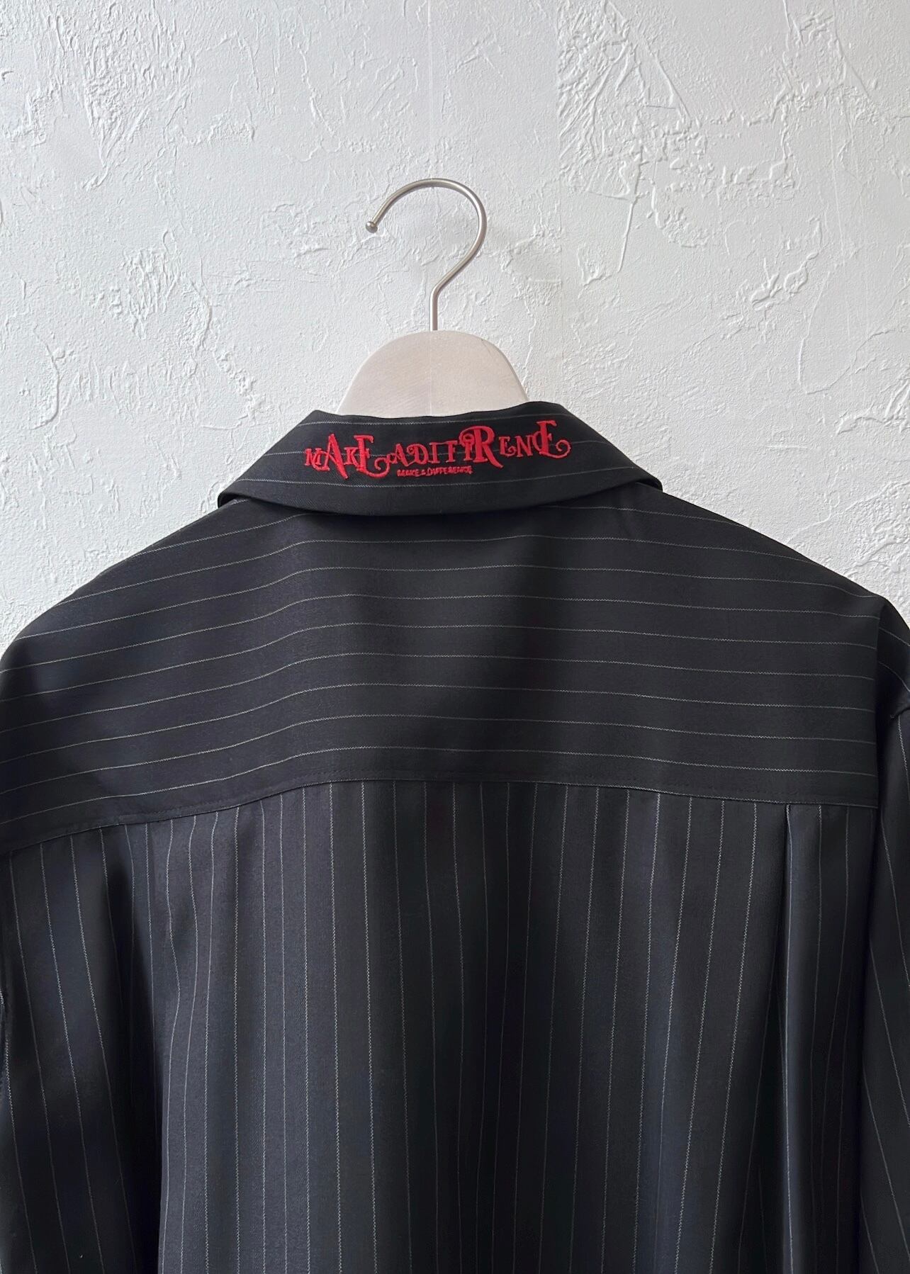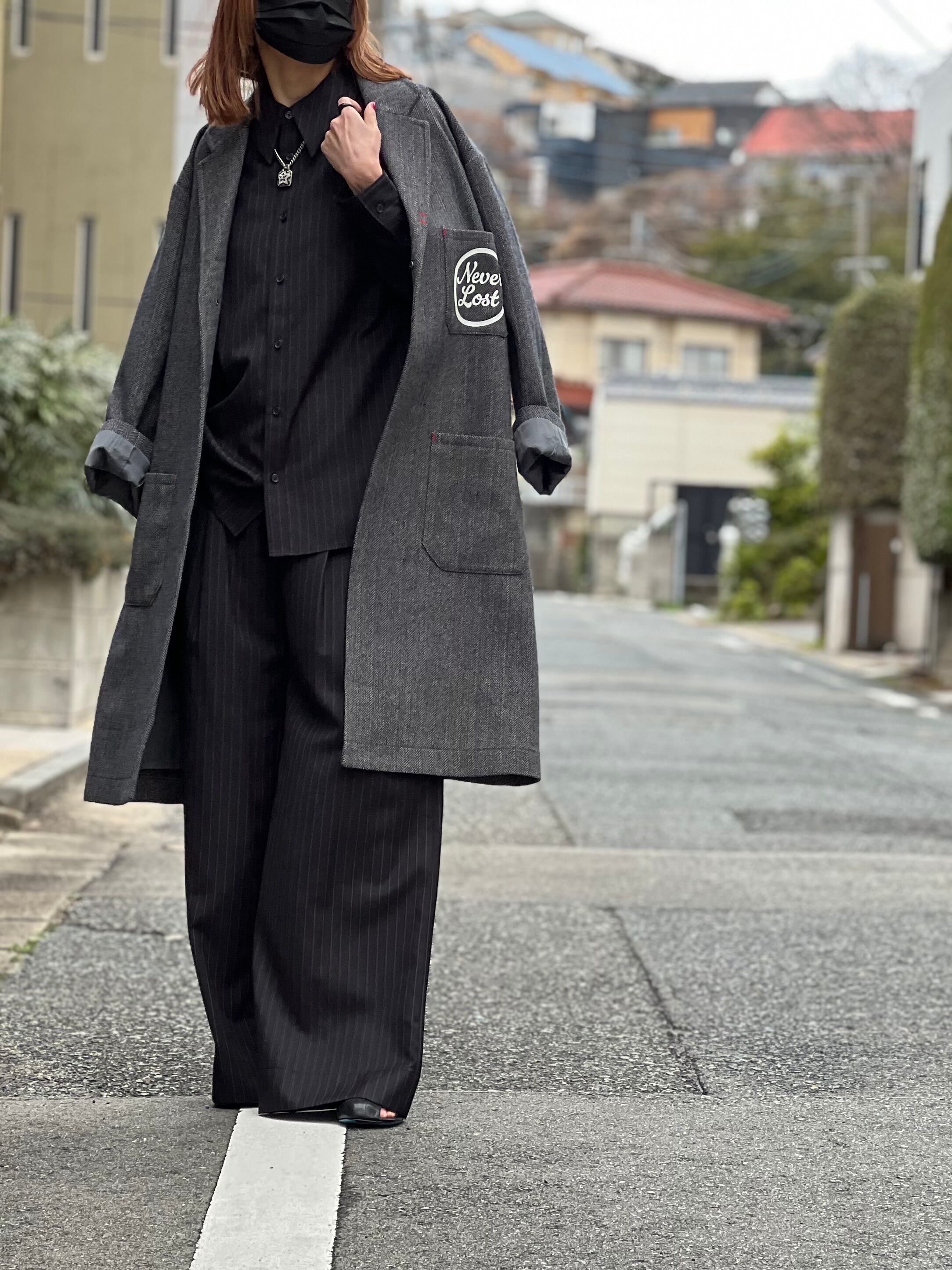 後ろ襟のロゴがユニークで、重ねてもオーバーに羽織ってもアクセントになります。